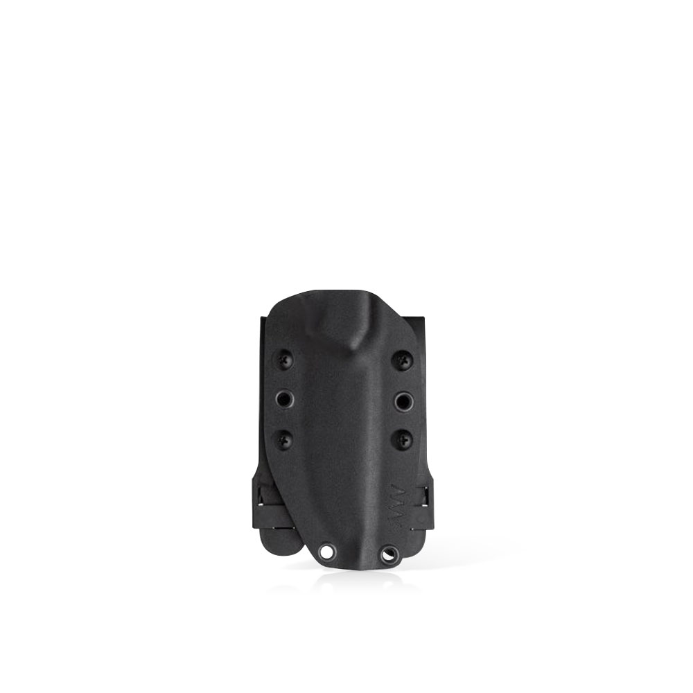 W zestawie z nożem otrzymujemy kaburę z tworzywa Kydex w kolorze czarnym. Kydex cechuje się wysoką odpornością na uderzenia, zarysowania, charakteryzuje się niską chłonnością wilgoci, odpornością na różnorodne warunki atmosferyczne oraz wiele środków chemicznych. Kabury z niego wykonane użytkujemy wygodnie i długotrwale. Kabura mocowana jest do paska za pomocą poziomej przelotki z gruboziarnistego nylonu podszytego rzepem. Wyposażenie w rzep umożliwia założenie kabury bez odpinania paska od spodni. Jest to bezpieczny sposób montażu zważywszy również na fakt, że rzep pionowy przed przypadkowym rozpięciem zabezpiecza dodatkowa zapinana na niego szlufka z rzepem poziomym. Kabura noża zaopatrzona została w piny przelotowe, do których dołączono starannie zapleciony odcinek paracordu oraz spinający go dodatkowy plastikowy klips. Obydwa elementy z powodzeniem posłużą do przypięcia kabury do plecaka, elemencie uprzęży czy rozwiązaniu typu Molle.NAZWA: P200
