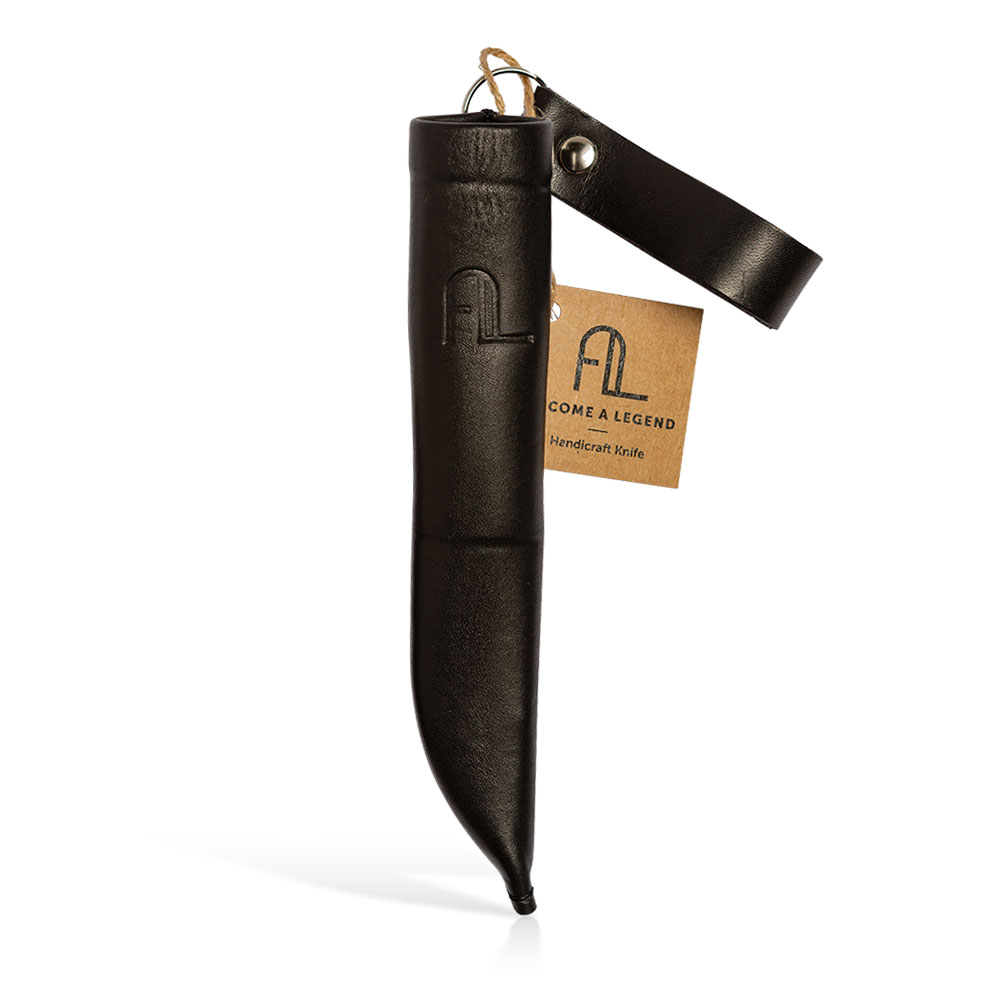 W zestawie z nożem otrzymujemy kaburę wykonaną ze skóry. Jest to klasyczne rozwiązanie pasujące stylem do narzędzia w niej się znajdującego. Drewno i skóra od zawsze stanowią idealne połączenie. Podobnie jak sam nóż, pochwa wykonana jest ręcznie, ma wysoki profil i chowa w sobie część rękojeści by lepiej zabezpieczać nóż przed wypadnięciem. Mocowana jest tradycyjnie do pasa w pozycji pionowej.