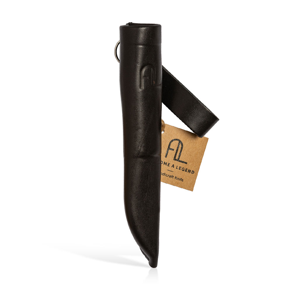 W zestawie z nożem otrzymujemy kaburę wykonaną ze skóry. Jest to klasyczne rozwiązanie pasujące stylem do narzędzia w niej się znajdującego. Drewno i skóra od zawsze stanowią idealne połączenie. Podobnie jak sam nóż, pochwa wykonana jest ręcznie, ma wysoki profil i chowa w sobie część rękojeści by lepiej zabezpieczać nóż przed wypadnięciem. Mocowana jest tradycyjnie do pasa w pozycji pionowej.