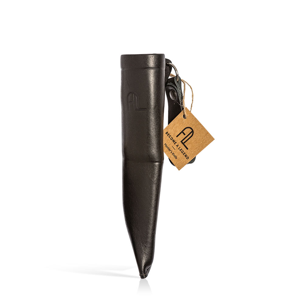 W zestawie z nożem otrzymujemy kaburę wykonaną ze skóry. Jest to klasyczne rozwiązanie pasujące stylem do narzędzia w niej się znajdującego. Drewno i skóra od zawsze stanowią idealne połączenie. Podobnie jak sam nóż, pochwa wykonana jest ręcznie, ma wysoki profil i chowa w sobie część rękojeści by lepiej zabezpieczać nóż przed wypadnięciem. Mocowana jest tradycyjnie do pasa w pozycji pionowej.