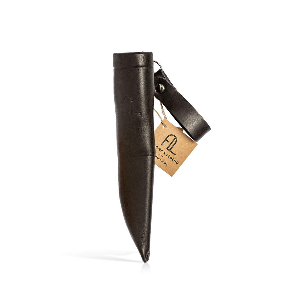 W zestawie z nożem otrzymujemy kaburę wykonaną ze skóry. Jest to klasyczne rozwiązanie pasujące stylem do narzędzia w niej się znajdującego. Drewno i skóra od zawsze stanowią idealne połączenie. Podobnie jak sam nóż, pochwa wykonana jest ręcznie, ma wysoki profil i chowa w sobie część rękojeści by lepiej zabezpieczać nóż przed wypadnięciem. Mocowana jest tradycyjnie do pasa w pozycji pionowej.