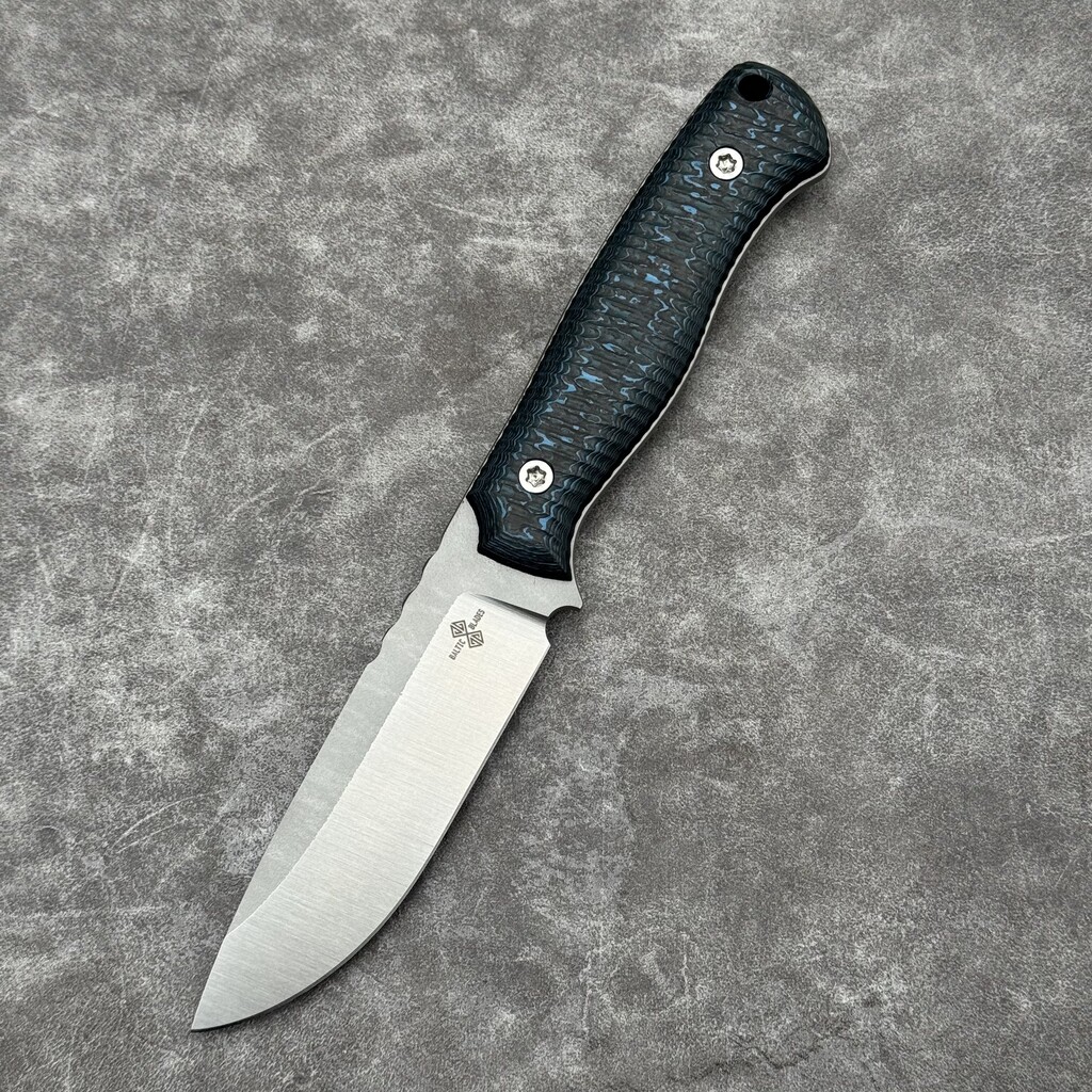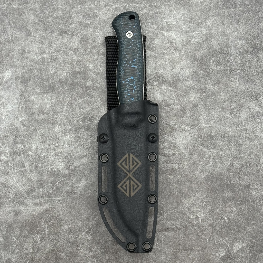 - Rękojeść: włókno węglowe FatCarbon Arctic Storm + czarne przekładki z G10