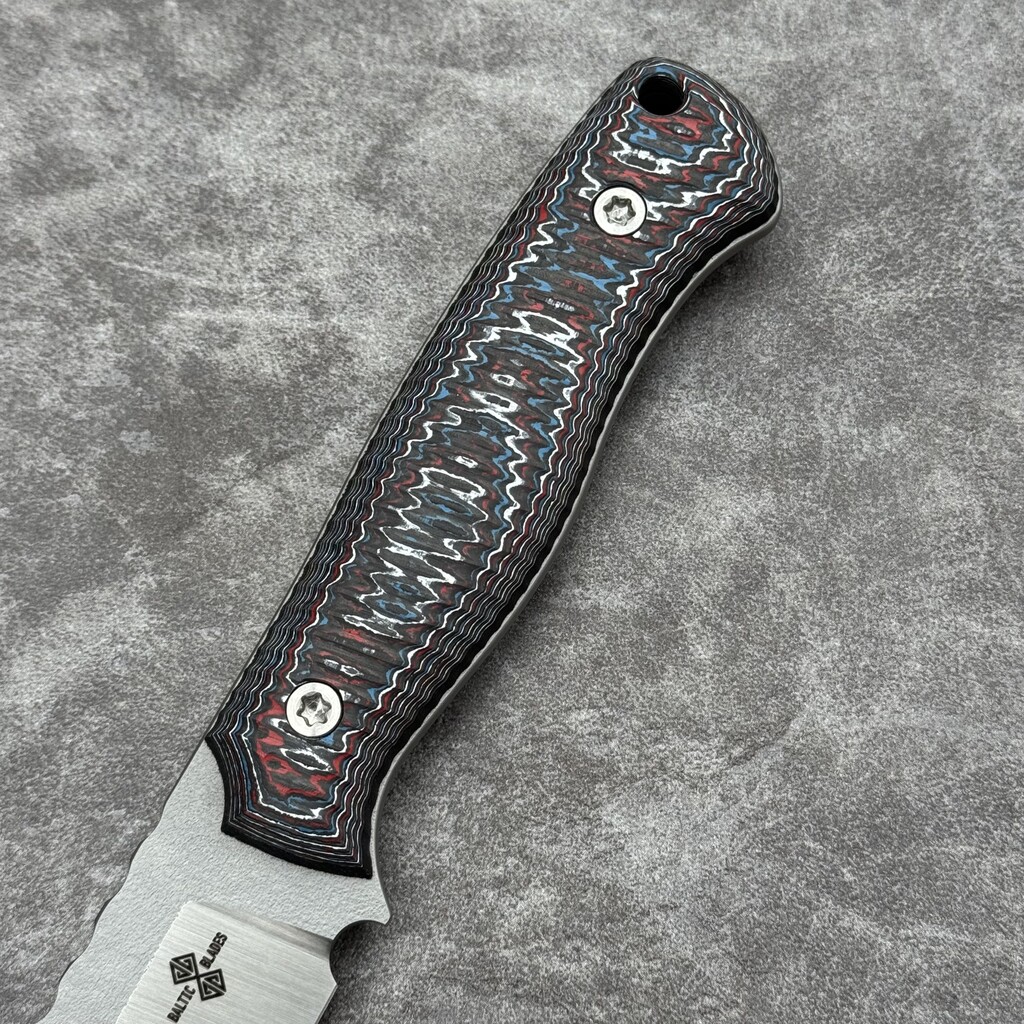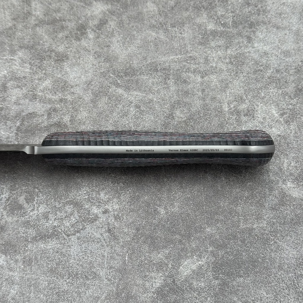 - Rękojeść: włókno węglowe FatCarbon Nebula + czarne przekładki z G10