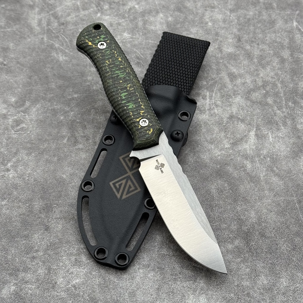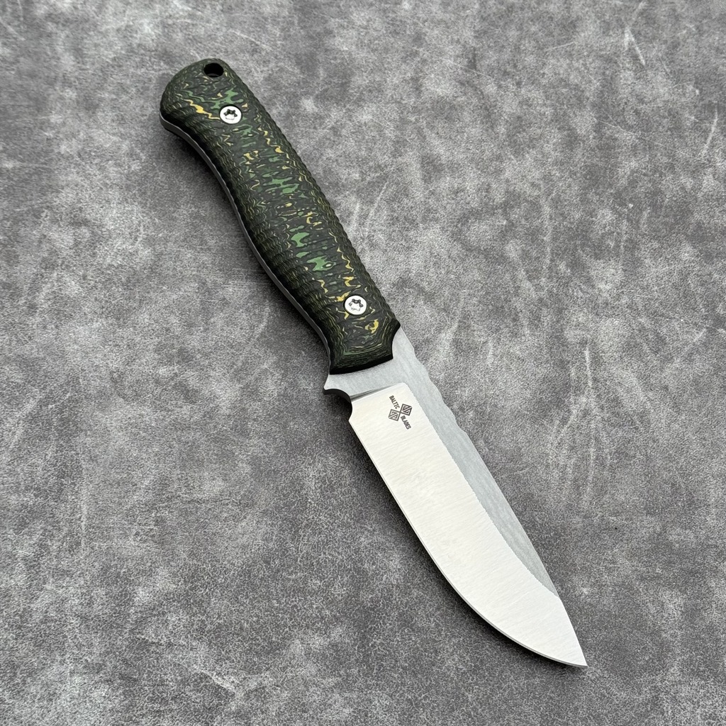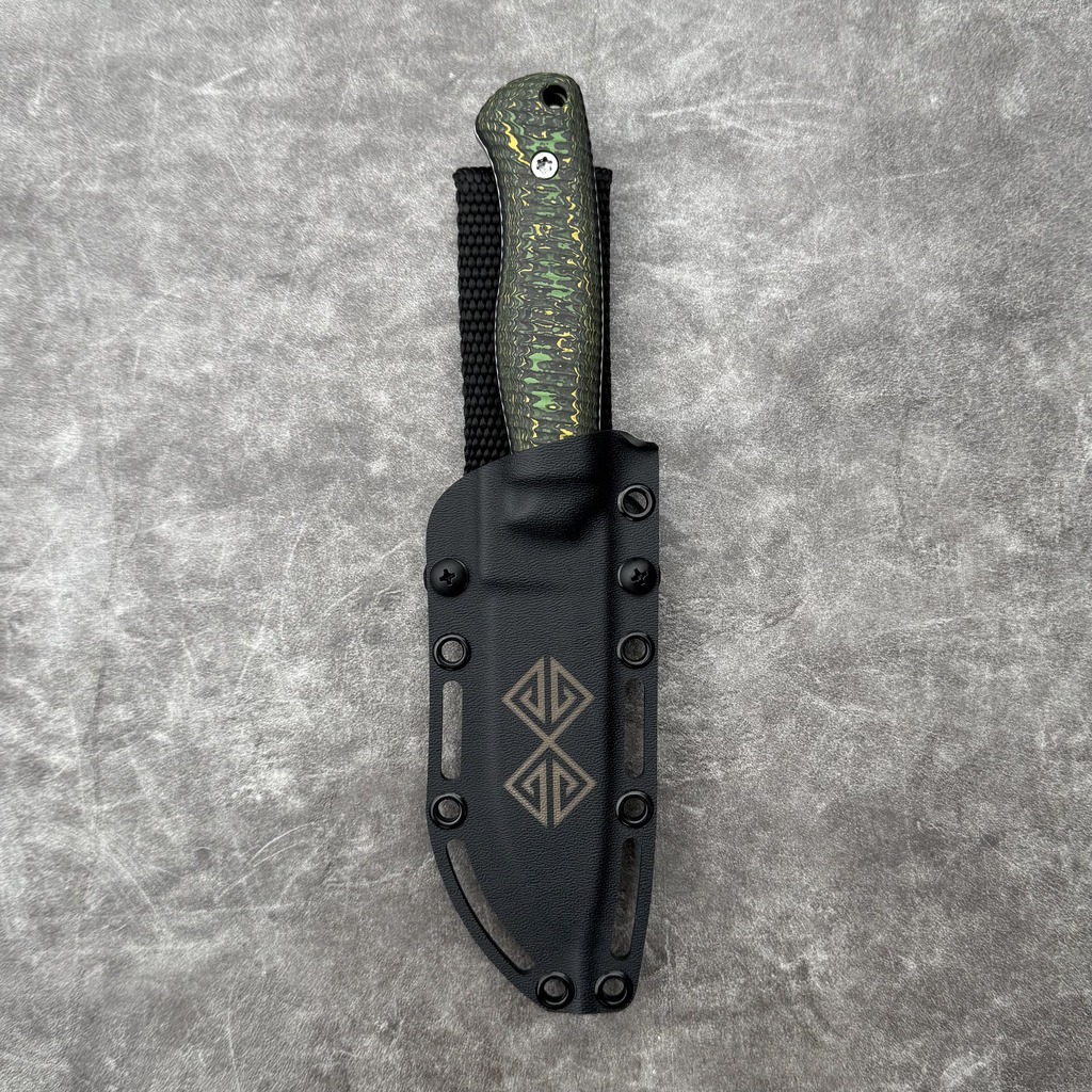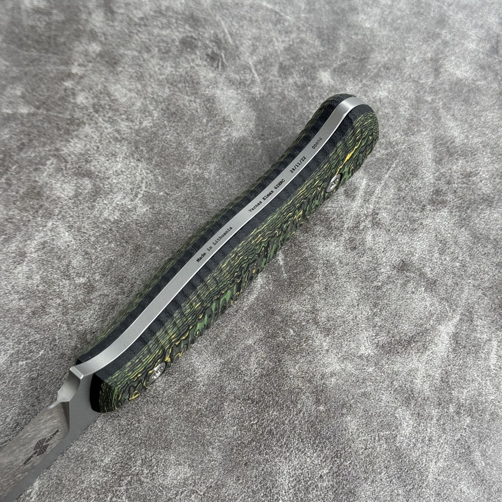 Nóż Baltic Blades Varnas „Toxic Storm” | Satin Elmax FatCarbon Black Kydex