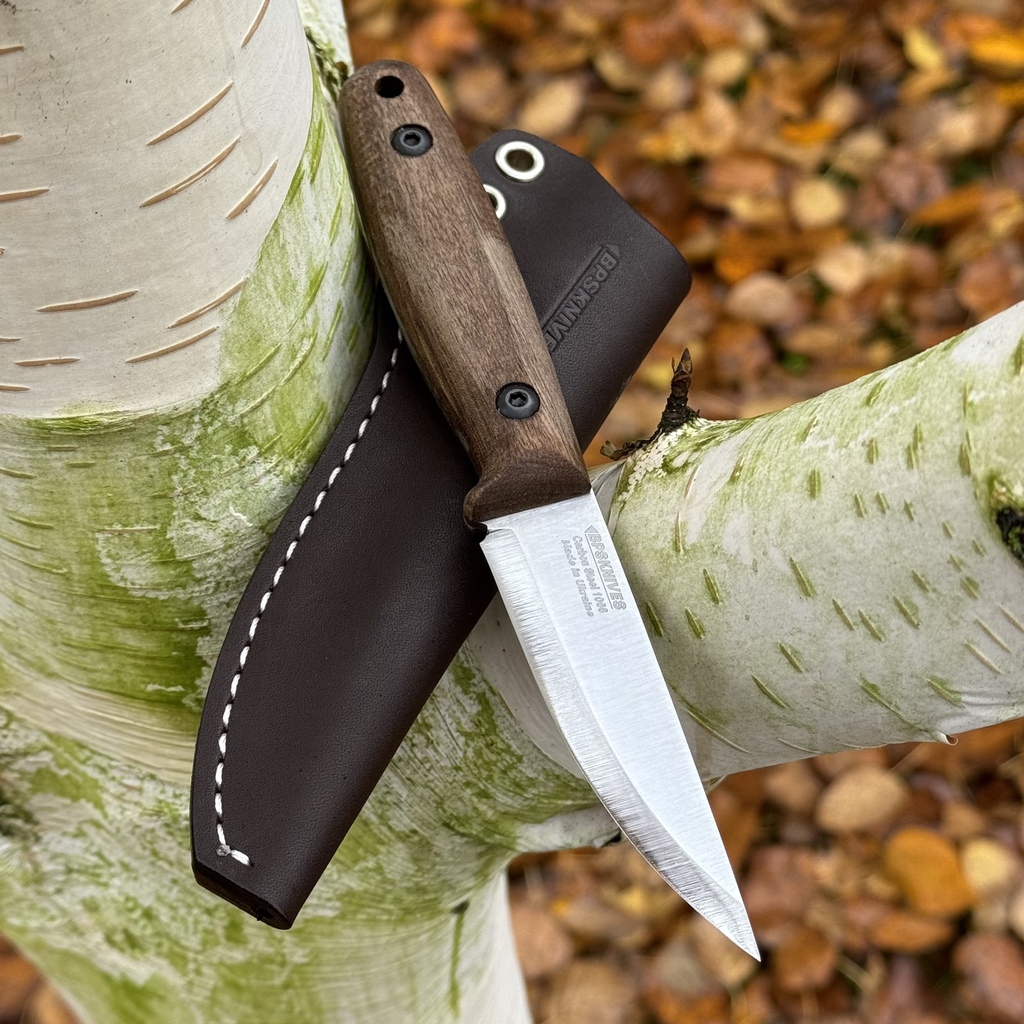 Nóż BPS Knives Finn Lite 'Walnut’ Stylistyka Puukko – Wersja Limitowana | Stal Węglowa 1066 Drewno Orzech Brązowa Skórzana Pochwa