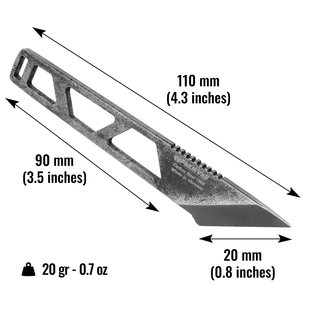 - Wymiary: długość całkowita: 111 mm | 4.37″, grubość ostrza: 2,7 mm | 0.11″
