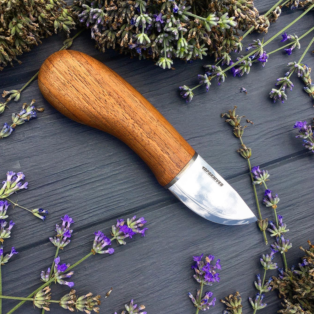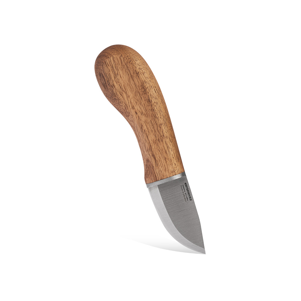 Rękojeść o bardzo ergonomicznym kształcie, powstała z jednego kawałka drewna orzechowego. Drewno to od lat z powodzeniem stosowane jest jako materiał rękojeści klasycznych noży outdoor’owych. Całość została zabezpieczona Olejem Duńskim co sprawia, że drewno jest odporne na wilgoć i brud.