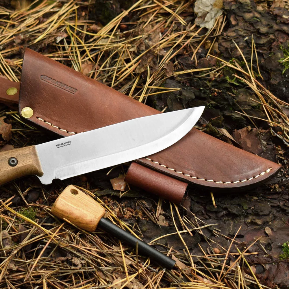 - Bestsellerowy nóż BPS Knives Adventurer w komplecie ze skórzaną pochewką i krzesiwem,