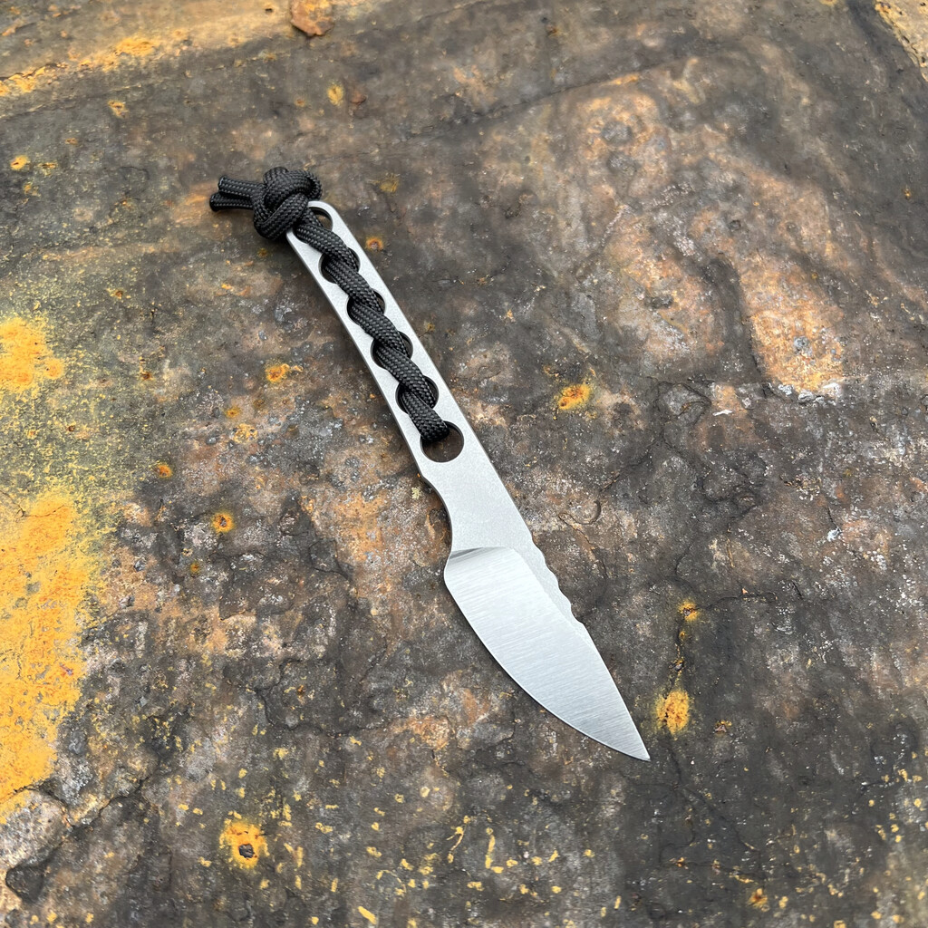 Nóż posiada rękojeść o budowie szkieletowej z otworami na paracord. Oryginalnie zapleciono na niej odcinek paracordu o dobranej przez wykonawcę kolorystyce. Nic nie stoi na przeszkodzie żeby kolor spersonalizować pod swoje potrzeby lub wymienić w razie zabrudzenia. Paracord poprawia chwytność / przyczepność rękojeści, ułatwia wyjmowanie noża z kabury. Jedną z ciekawych opcji personalizacji jest z pewnością możliwość podczepienia na końcu rękojeści koralika za sprawą np. paracordu i jednego z popularnych splotów np. snake lub diamond. Oryginalnie do zestawu nie dołączono koralika, ale w razie chęci wzbogacenia swojego ostrza o jeden z nich zapraszamy TUTAJ.