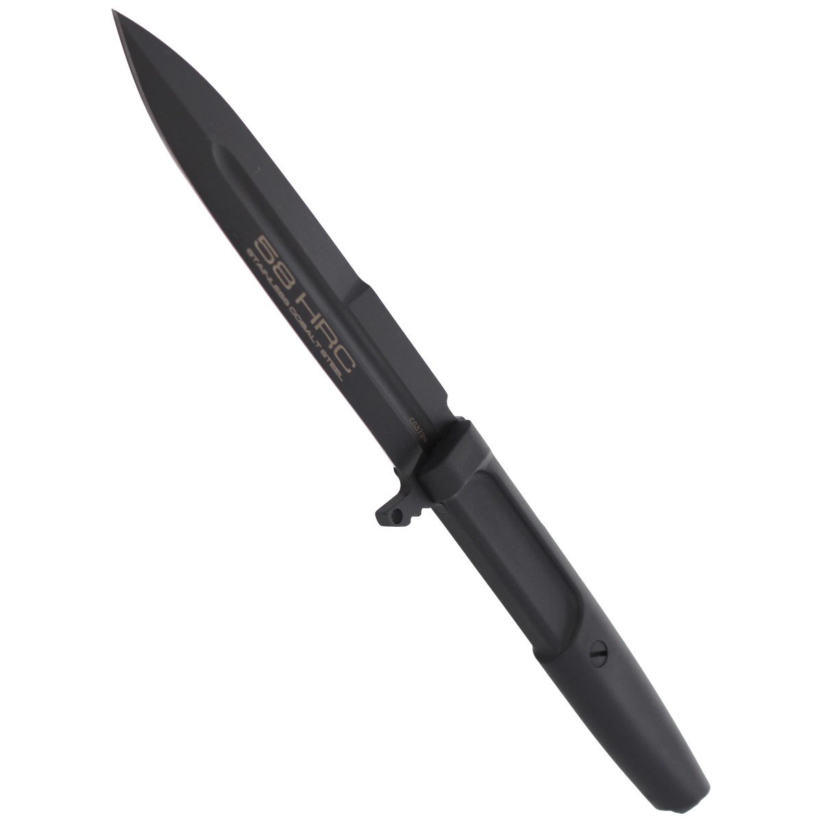 Głownia – Spear Point, grubości 4 mm ze zwiększającym właściwości przebijające fałszywym ostrzem. Po obu stronach klingi rowki zbrocza / wlewy drenażowe (blood-draining slot). Klingę pokryto polerowaną chemicznie, nierefleksyjną powłoką MIL-C-13924 BURNISHING. Ostrze gładkie Plain wyprowadzono szlifem płaskim (Flat grind) zapewniającym dobre właściwości tnące. Upper jimping długie teksturowana podparcie pod kciuk, a także single finger guard jednostronny jelec / karbowana osłona chroniąca dłoń przed zsunięciem się na ostrze.