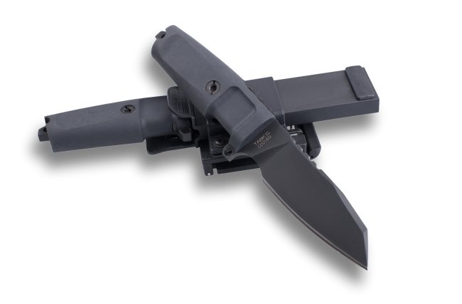 Pochwa – z formowanego wtryskowo nylonu w kolorze czarnymumożliwia bezpieczne przenoszenie oraz szybkie dobycie noża. Trzy możliwości ustawienia kąta przenoszenia (poziomo, pionowo i ukośnie pod kątem 45°). Kaburę wyposażono w pojedyncze, automatyczne, aktywowane naciskiem zabezpieczenie, dla szybkiego chwytania i dobycia noża. Mocowanie umożliwia jej szybkie przypięcie / wypięcie etui. Pasuje do pasów o szerokości 32-46 mm, a po wyjęciu regulacji do większości pasów taktycznych. W celu uniknięcia przesuwania się pochwy na pasie, uchwyt wyposażono w dwie śruby regulacyjne.