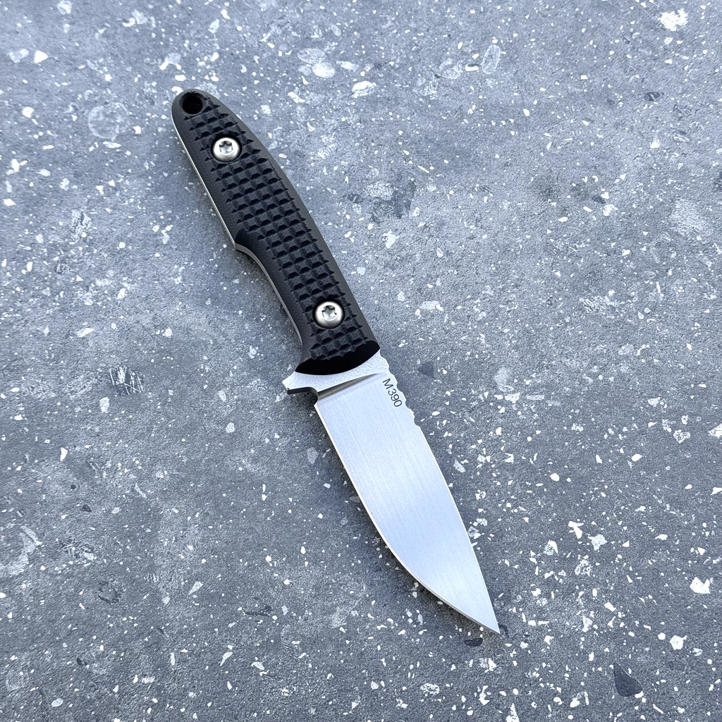 Ostrze ze stali premium M390 posiada doskonałe cechy użytkowe: długotrwałą ostrość, nierdzewność i niezawodną wytrzymałość (wysoka odporność na ścieranie, duża odporność na uszkodzenia mechaniczne).