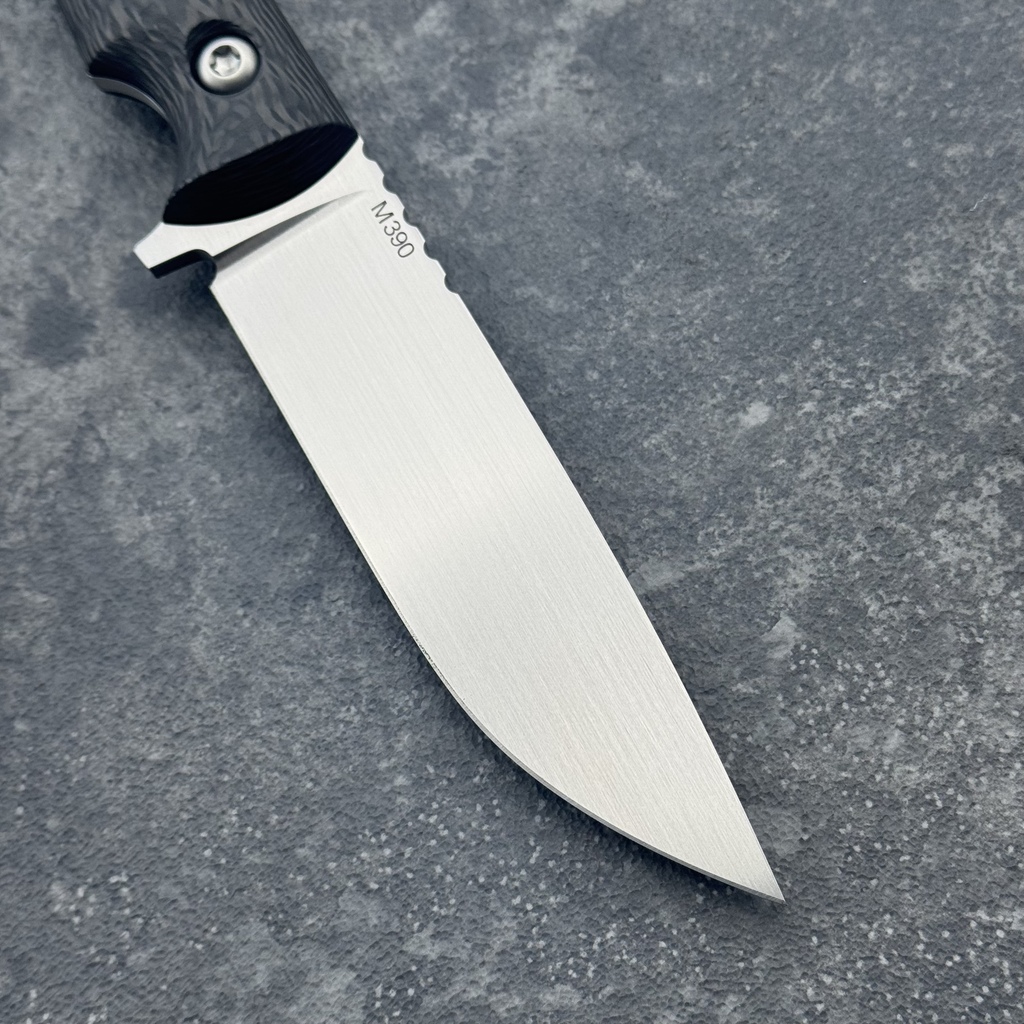 Ostrze ze stali premium M390 posiada doskonałe cechy użytkowe: długotrwałą ostrość, nierdzewność i niezawodną wytrzymałość (wysoka odporność na ścieranie, duża odporność na uszkodzenia mechaniczne).