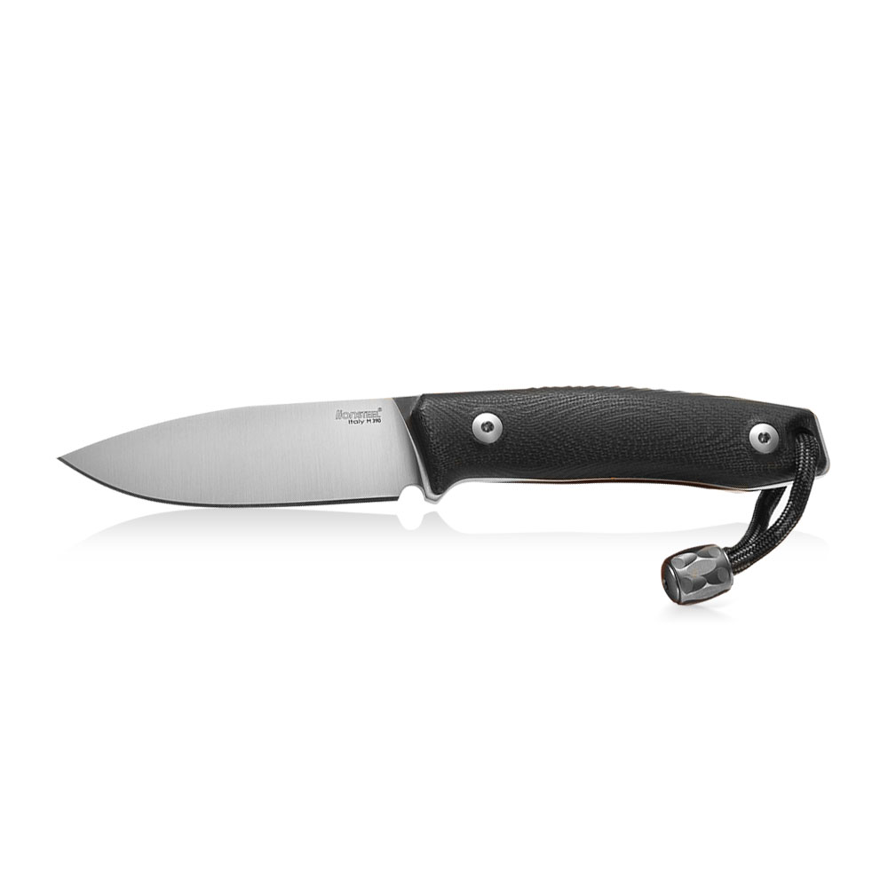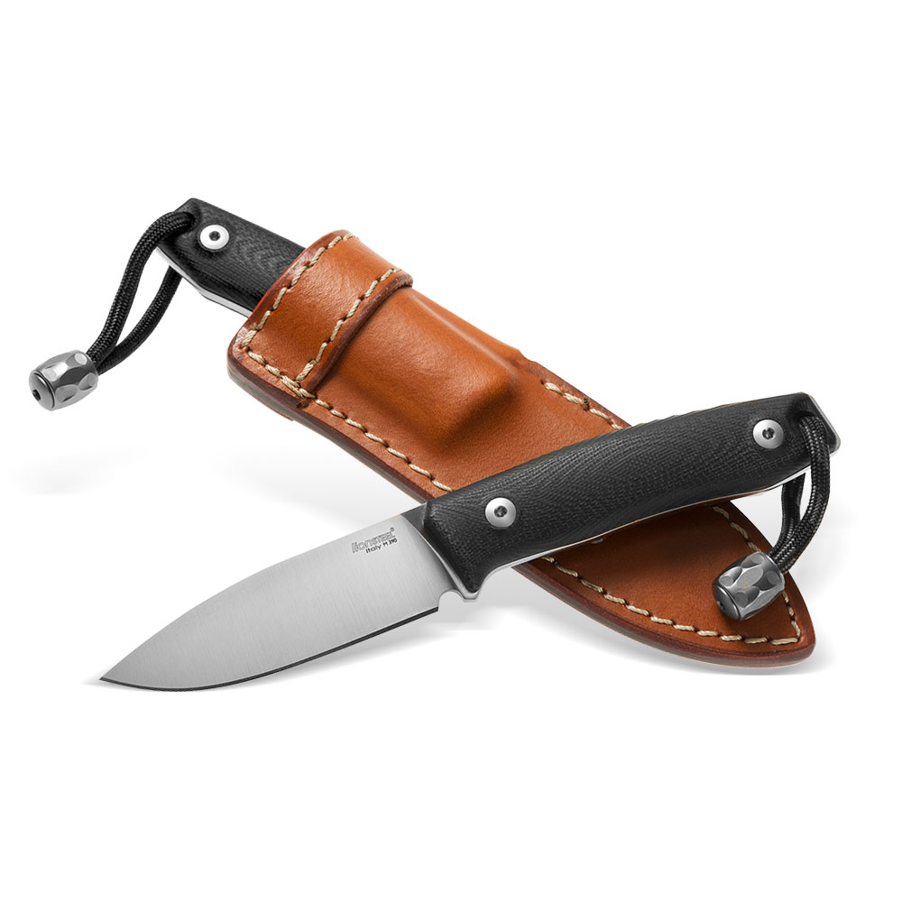 Nóż LionSTEEL M1 Black G10 M390 by Molletta posiada roboczy profil ostrza typu drop point z pełnym szlifem płaskim. Ostrze ze stali M390 ma satynowe wykończenie a rękojeść wykonana została z kompozytu G10. W komplecie z nożem znajduje się zdobiona przeszyciami kabura z brązowej skóry oraz tytanowy koralik (TIP – small TItanium Pearl).