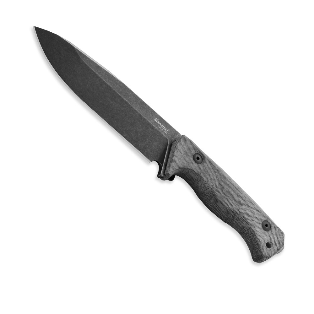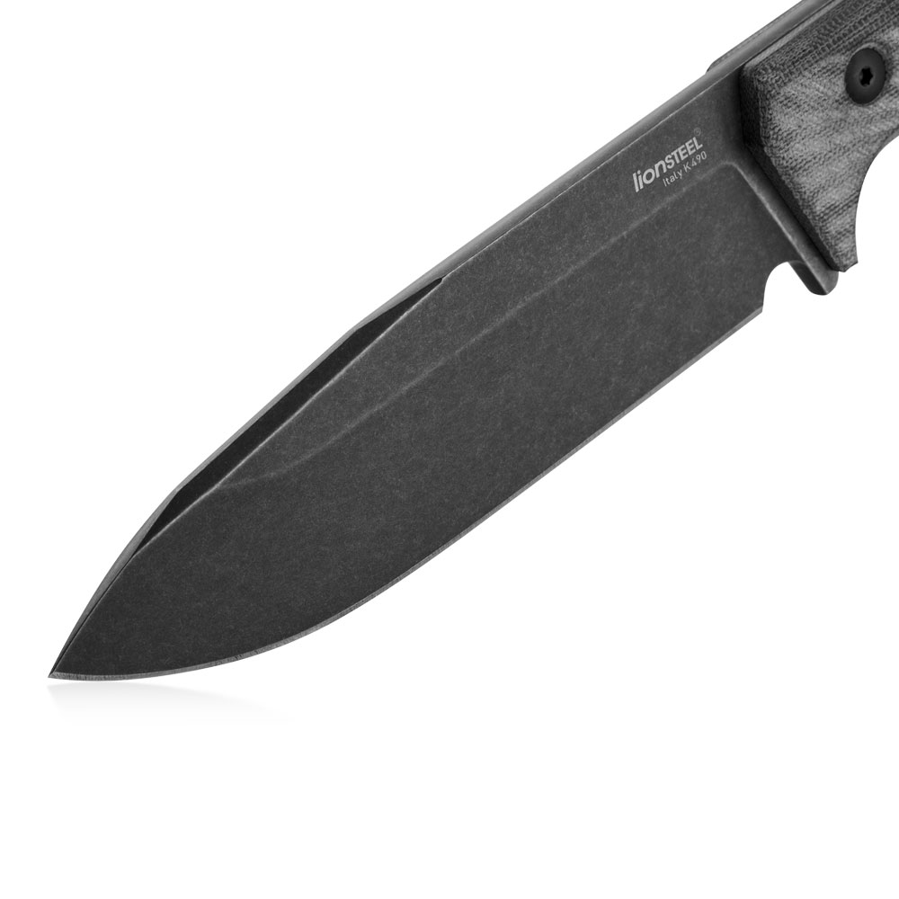 Noż LionSTEEL T6B Black Canvas Old Black K490 by Molletta to nóż o konstrukcji full tang, wykonany z jednego odcinka stali przebiegającego przez całą długość i szerokość rękojeści, do której przymocowano okładki z micarty.