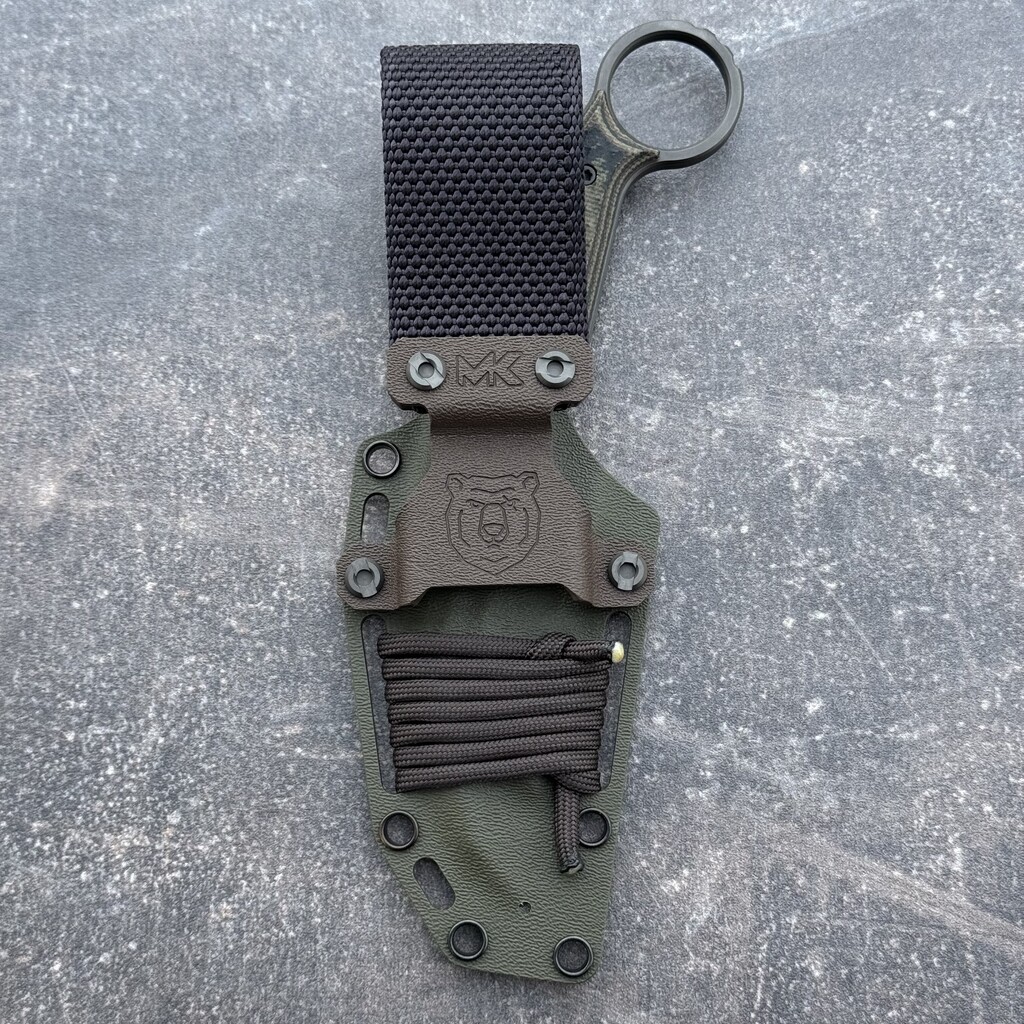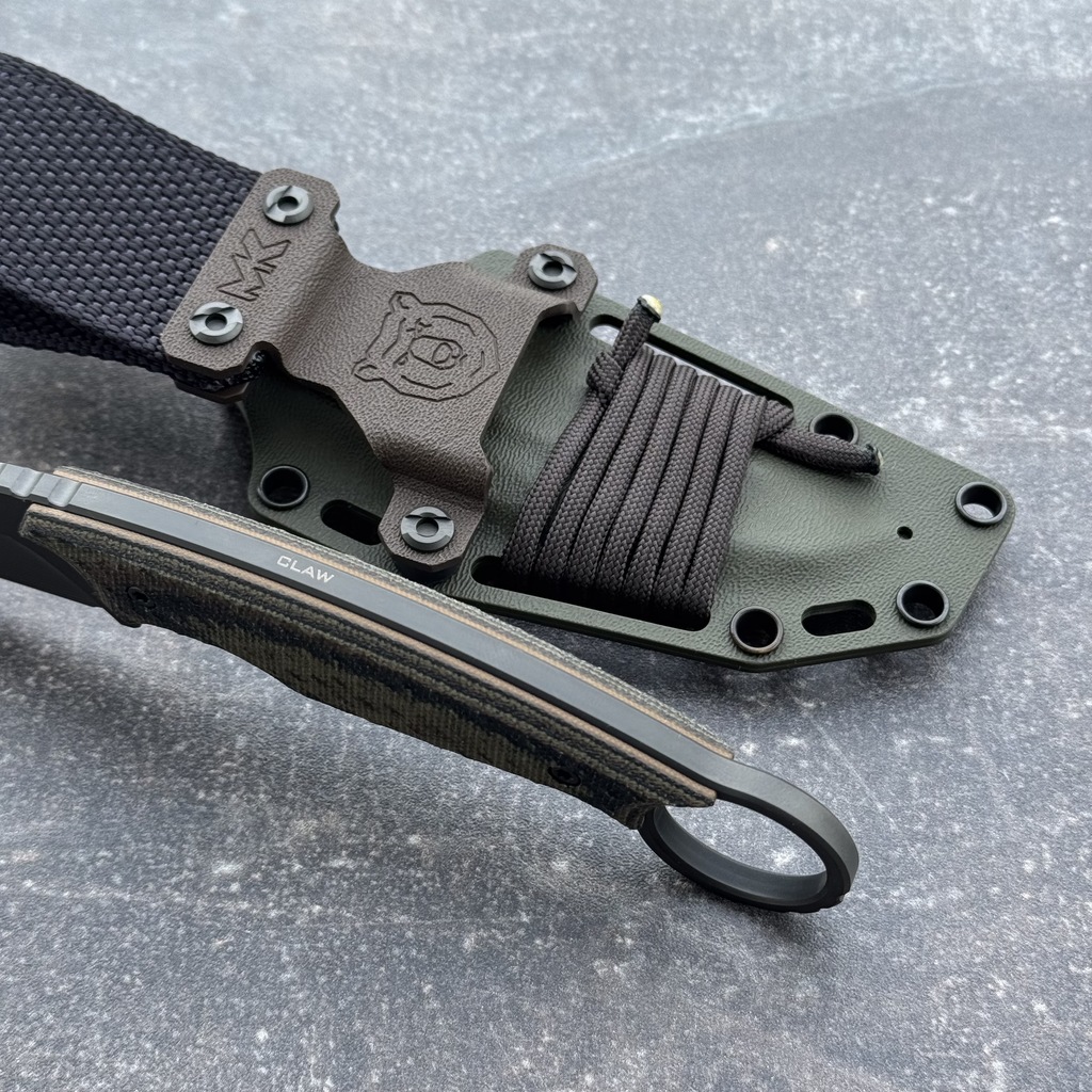 Nóż MK Knives & Tools Claw „Fear The Bear” DLC Vanadis 23 Camo Micarta & Coyote G10 OD Green Kydex