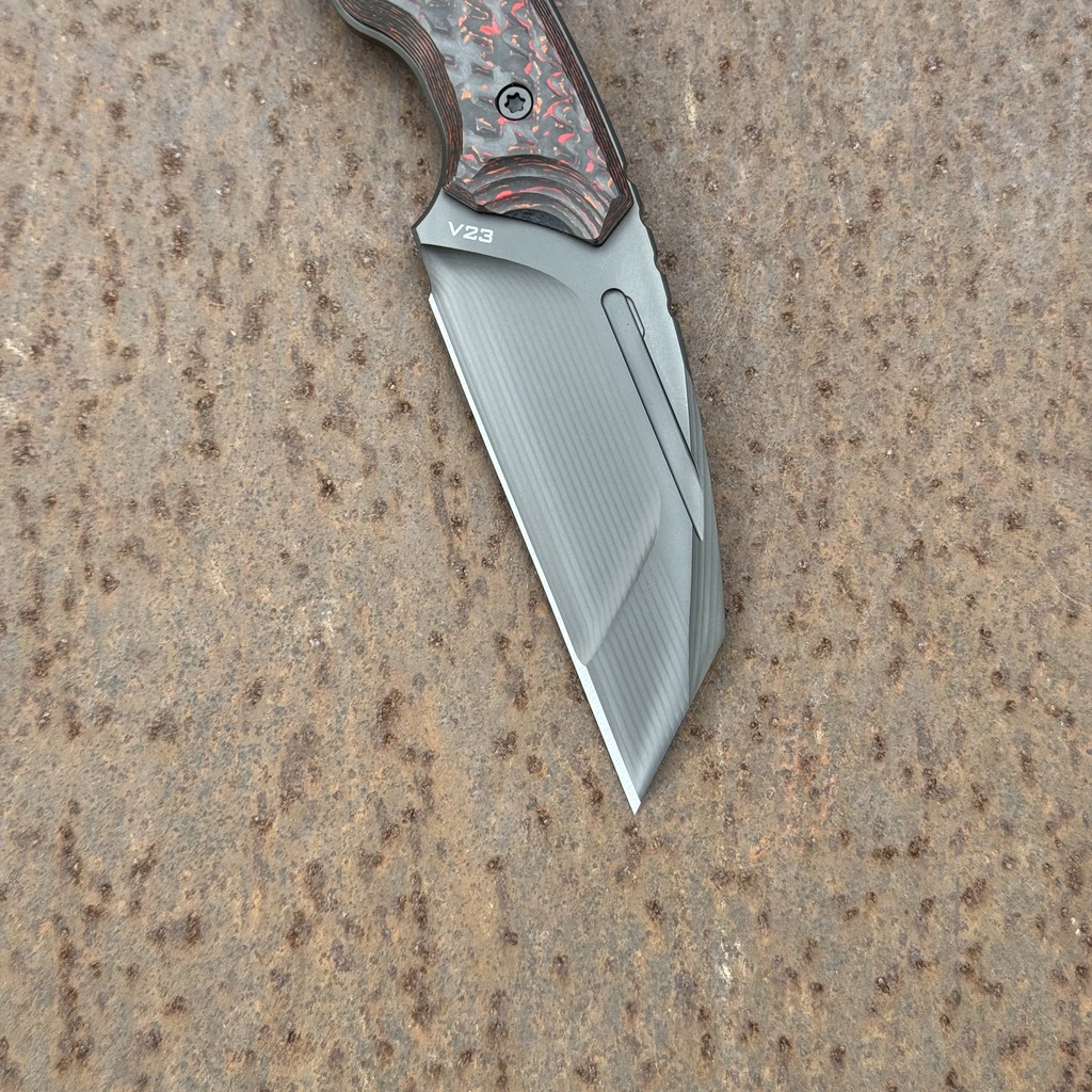 - Prezentowany Claw posiada ostrze ze stali o świetnej wytrzymałości Vanadis 23 w czarnej powłoce DLC. Ostrze posiada innowacyjny podwójny szlif rowkowy (Double Groove Grind) oraz obustronne zbrocze (fuller).