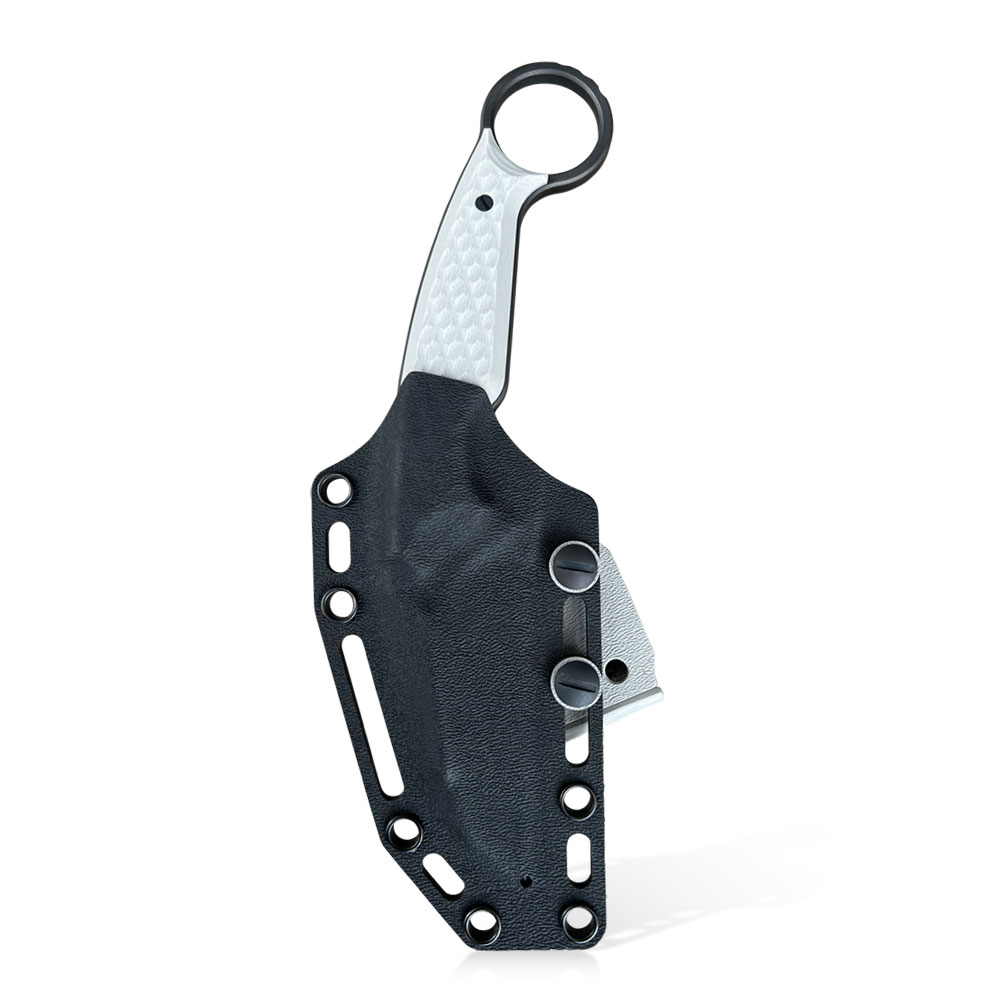 Nóż posiada kaburę z ręcznie formowanego tworzywa kydex cechującego się wysoką odpornością na uderzenia, zarysowania, charakteryzującego się niską chłonnością wilgoci, odpornego na różnorodne warunki atmosferyczne oraz wiele środków chemicznych.