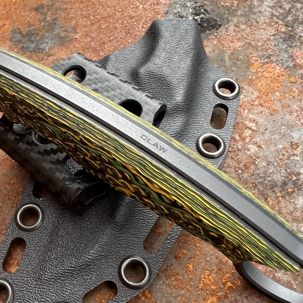 Claw produkowany jest z różnych rodzajów stali (Elmax, Vanadis 4 Extra, Vanadis 23), z różnymi sposobami wykończeń ostrza (powłoka PVD, DLC, stonewash, szkiełkowane, satyna itd.). Rękojeść tworzona jest z różnorodnych materiałów między innymi: z micarty, z kompozytu G10, z włókna węglowego o różnorodnej kolorystyce i różnorodnych autorskich wzorach, w tym powstałych poprzez połączenia tych materiałów. Do każdego realizowanego modelu knifemaker formuje odpowiednią kaburę z kydexu itp. materiałów, której kolorystyka (kabura i dodatki) odpowiada barwom ostrza i rękojeści aby całość stanowiła spójny komplet.