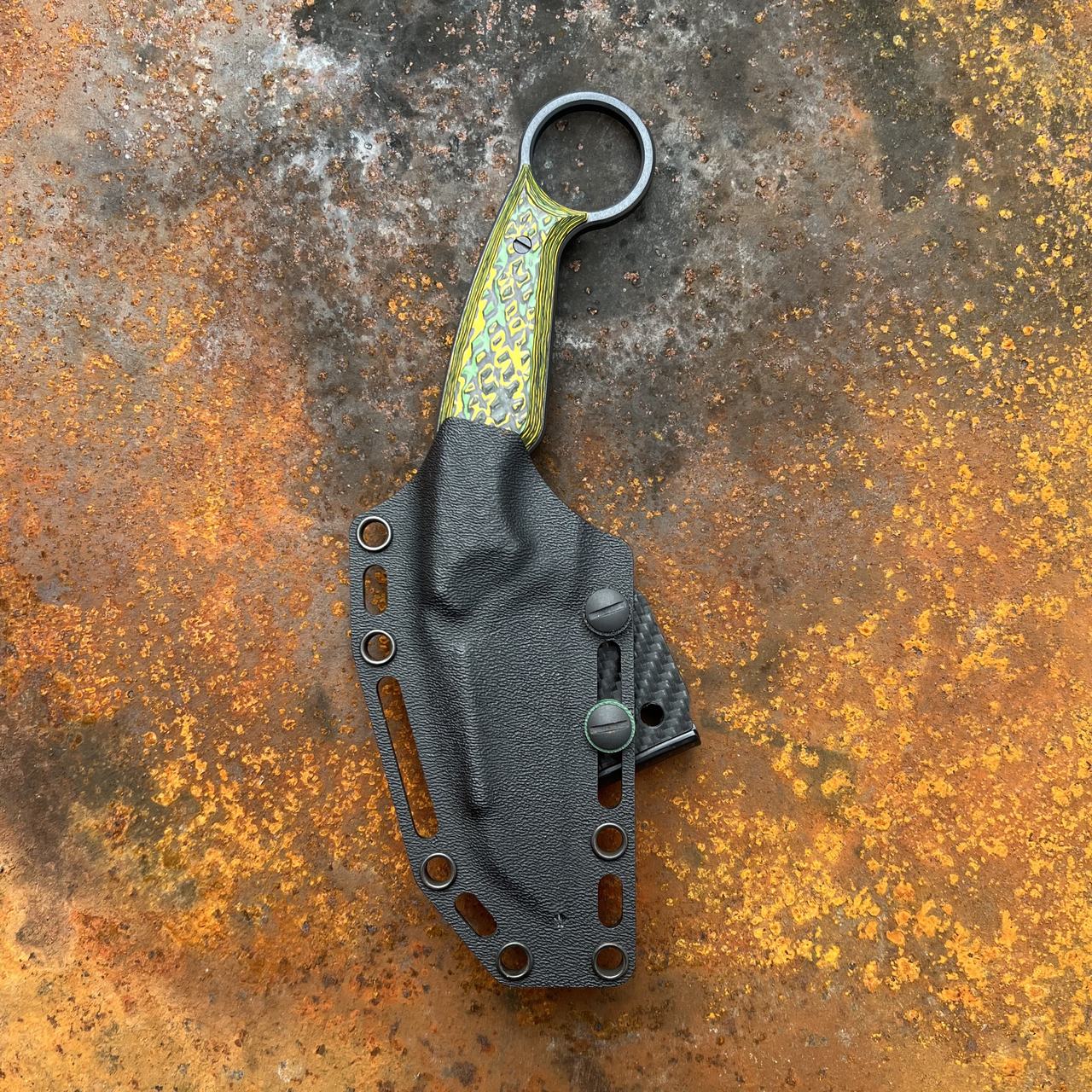 Nóż posiada kaburę z ręcznie formowanego tworzywa Kydex cechującego się wysoką odpornością na uderzenia, zarysowania, charakteryzującego się niską chłonnością wilgoci, odpornego na różnorodne warunki atmosferyczne oraz wiele środków chemicznych.