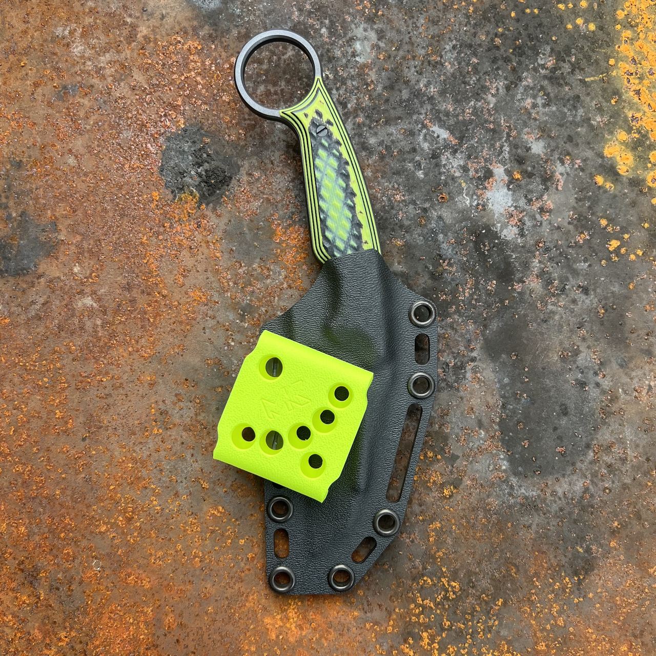 Nóż posiada kaburę z ręcznie formowanego tworzywa Kydex cechującego się wysoką odpornością na uderzenia, zarysowania, charakteryzującego się niską chłonnością wilgoci, odpornego na różnorodne warunki atmosferyczne oraz wiele środków chemicznych.