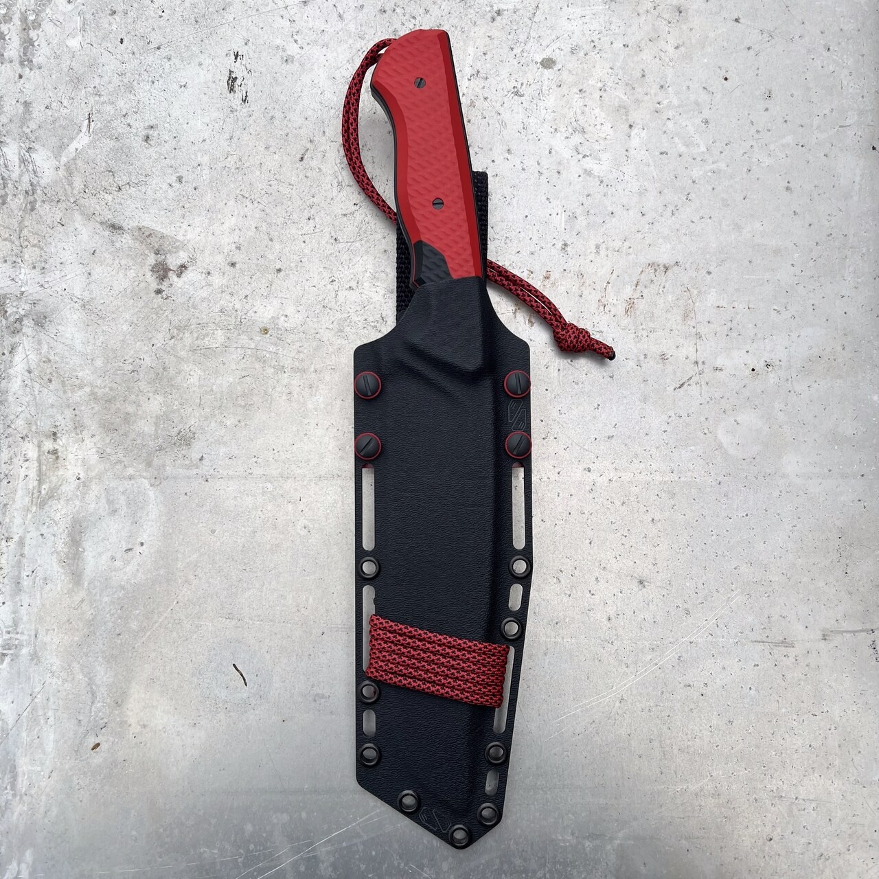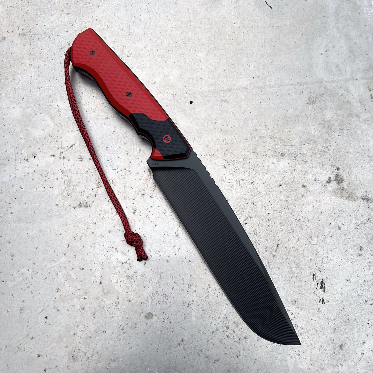 - Rękojeść: czerwony kompozyt G10 + czarne przekładki i wstawki