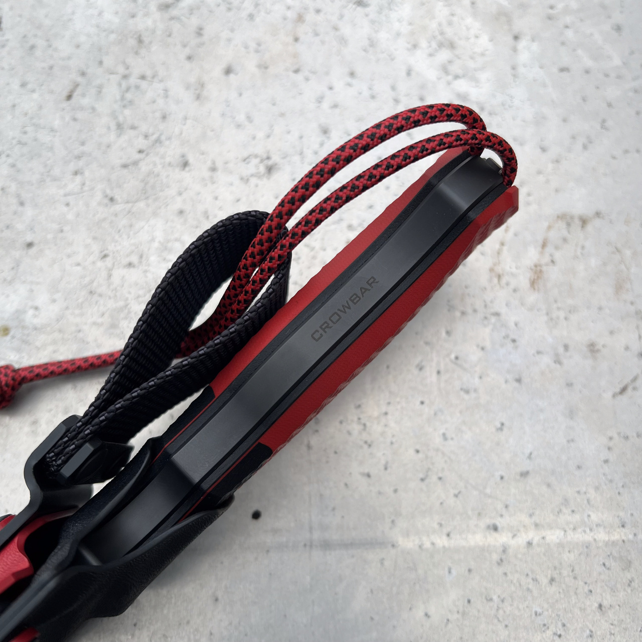 Nóż MK Knives & Tools Crowbar “FuturePunk” posiada ostrze ze stali Vanadis 4 Extra z głownią o imponującej grubości aż 9 mm na grzbiecie (!). Ostrze wykonano z innowacyjnym, delikatnie wklęsłym szlifem, widocznym jako subtelne rowki. Takie połączenie daje niesamowitą wytrzymałość narzędzia przy zachowaniu świetnych właściwości tnących. Głownię pokryto czarną powłoką DLC a rękojeść wykonano z czerwonego kompozytu G10 z czarnymi przekładkami i wstawkami z tego samego materiału. W zestawie otrzymujemy kaburę z czarnego tworzywa Kydex.