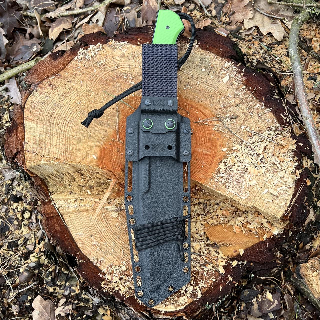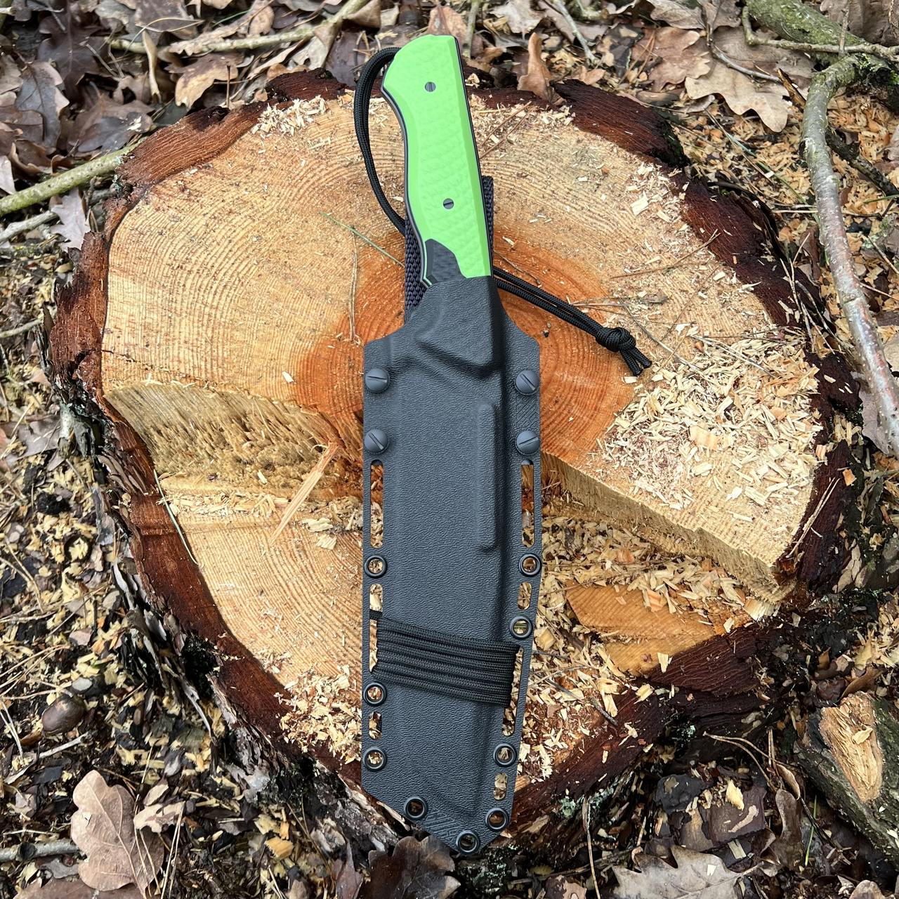 Nóż posiada kaburę z ręcznie formowanego tworzywa kydex cechującego się wysoką odpornością na uderzenia, zarysowania, charakteryzującego się niską chłonnością wilgoci, odpornego na różnorodne warunki atmosferyczne oraz wiele środków chemicznych.