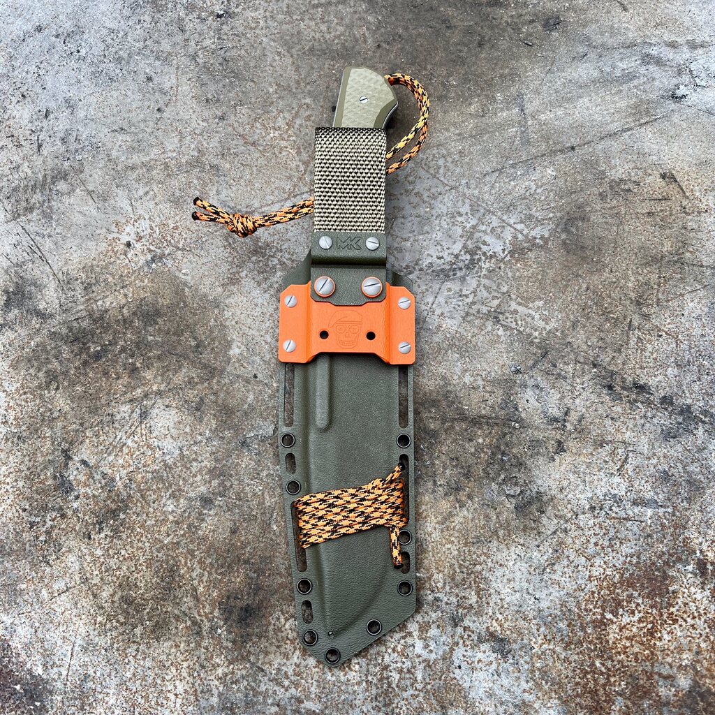 Nóż MK Knives & Tools Crowbar „Postapo” Stonewashed Elmax Olive/Orange G10 Kydex