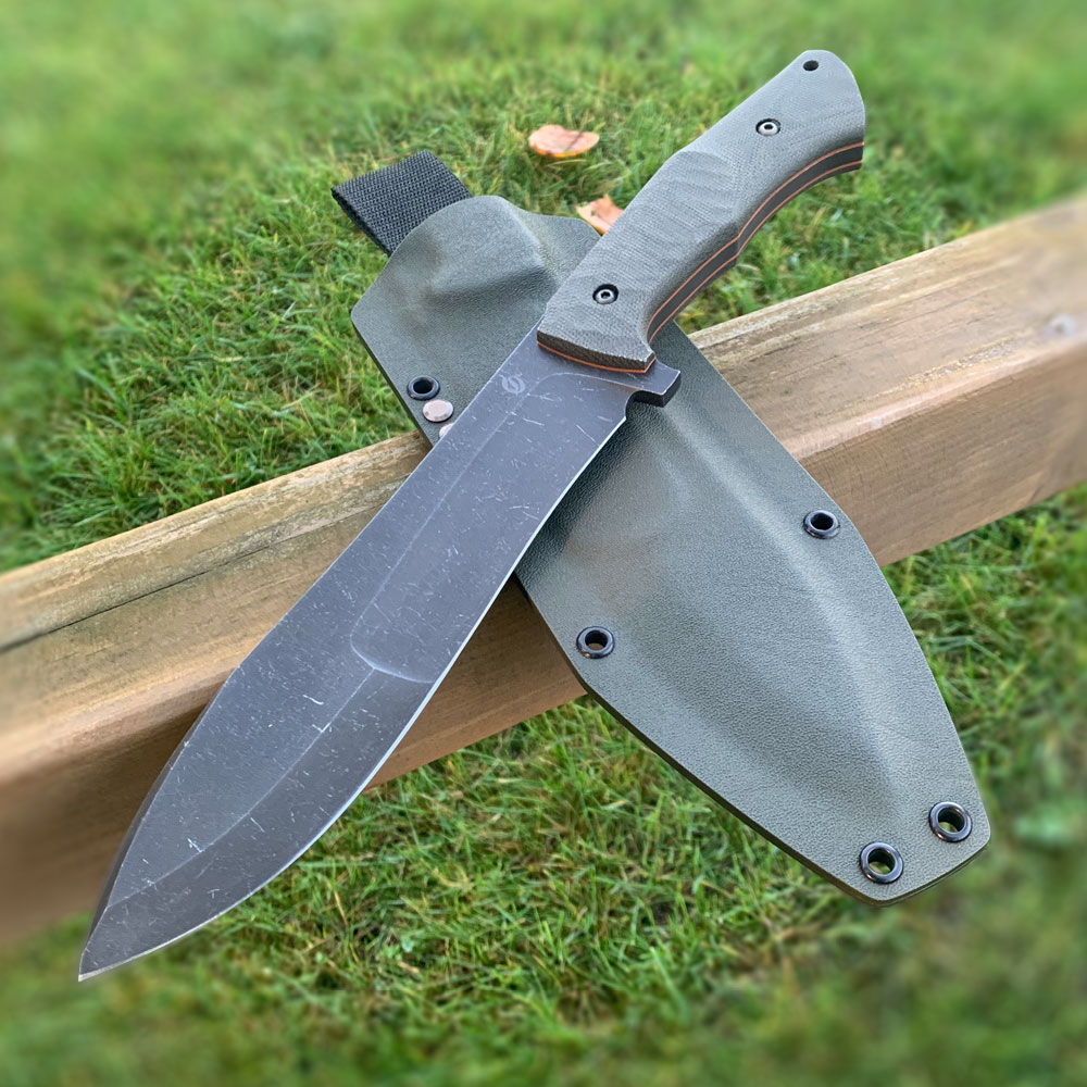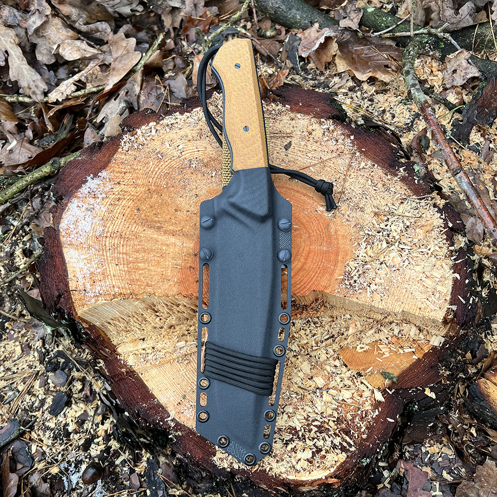 Nóż posiada kaburę z ręcznie formowanego tworzywa kydex cechującego się wysoką odpornością na uderzenia, zarysowania, charakteryzującego się niską chłonnością wilgoci, odpornego na różnorodne warunki atmosferyczne oraz wiele środków chemicznych.