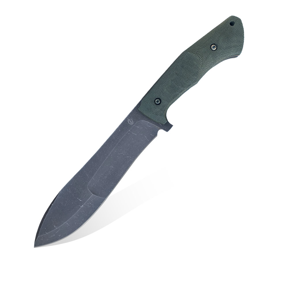 Ostrze noża zostało wyprofilowane w stylu drop point. Taka konstrukcja pomaga w najlepszym wykorzystaniu ostrza o naprawdę dużych gabarytach. Należy zaznaczyć, że delikatnie wygięta konstrukcja noża (łuk od końca rękojeści aż do czubka ostrza) w połączeniu z odpowiednio wyprofilowaną, podciętą rękojeścią nadaje całości bardziej agresywnego charakteru i w razie potrzeby pozwala lepiej wykorzystać siłę włożoną w zamaszyste cięcie podczas rąbania np. większego kawałka drewna itd. Ciekawostką w wykonaniu noża jest innowacyjny szlif wklęsły. Jest on widoczny już na pierwszy rzut oka w postaci charakterystycznych rowków zarówno na ostrzu właściwym jak i na ostrzu fałszywym. Wklęsłość szlifu jest bardzo subtelna i oprócz efektu wizualnego ma za zadanie wspomagać proces cięcia m.in. redukuje efekt przywierania materiału do ostrza i ułatwia rozszczepianie materiału.