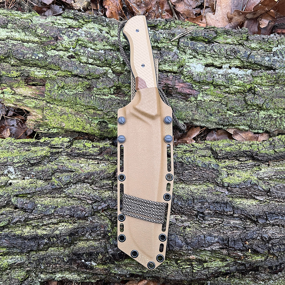 Nóż posiada kaburę z ręcznie formowanego tworzywa kydex cechującego się wysoką odpornością na uderzenia, zarysowania, charakteryzującego się niską chłonnością wilgoci, odpornego na różnorodne warunki atmosferyczne oraz wiele środków chemicznych.