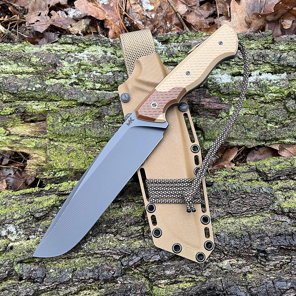 - Rękojeść: kompozyt G10 (baza coyote + brązowe wstawki)