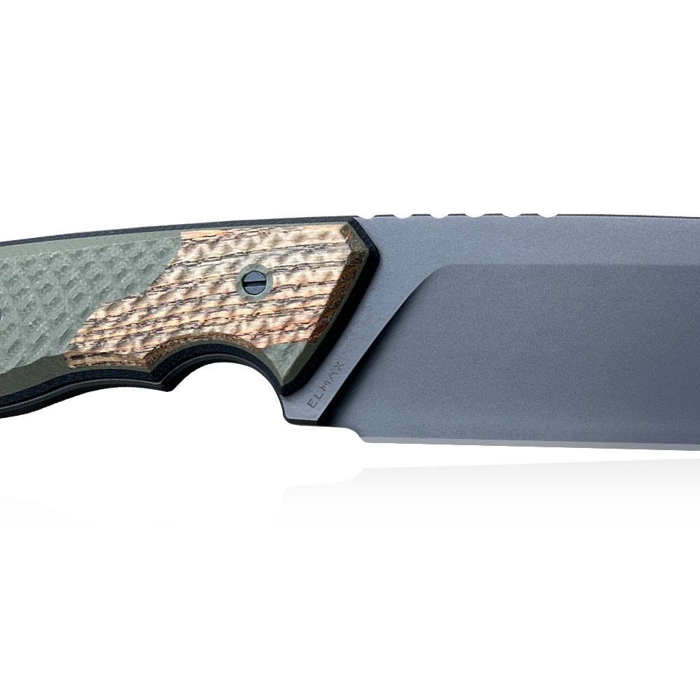 Nóż wykonany został ze świetnej stali Elmax. Elmax to jedna z kilku stali dostępnych na rynku znajdujących się w absolutnym topie jakościowym materiałów służących do produkcji noży premium. Noże z niej zrobione są ekstremalnie wytrzymałe na przeciążenia, niezwykle długo pozostają ostre i mają doskonałe właściwości antykorozyjne.