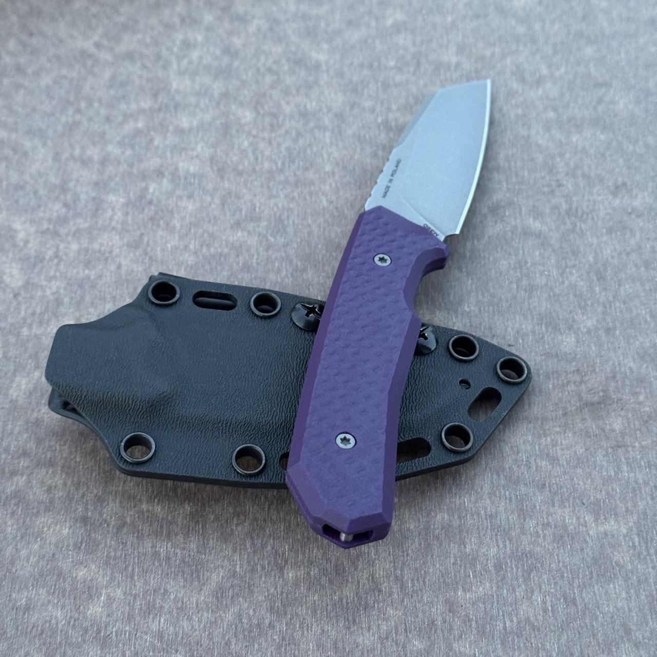 **Rękojeść obudowująca trzpień wykonana została z laminatu G10 w kolorze fioletowym (purple). W zestawie znajduje się kabura z tworzywa Kydex w czarnym kolorze z klipsem Ulticlip Slim 3.3 oraz piktogramem serii „Expedition”.