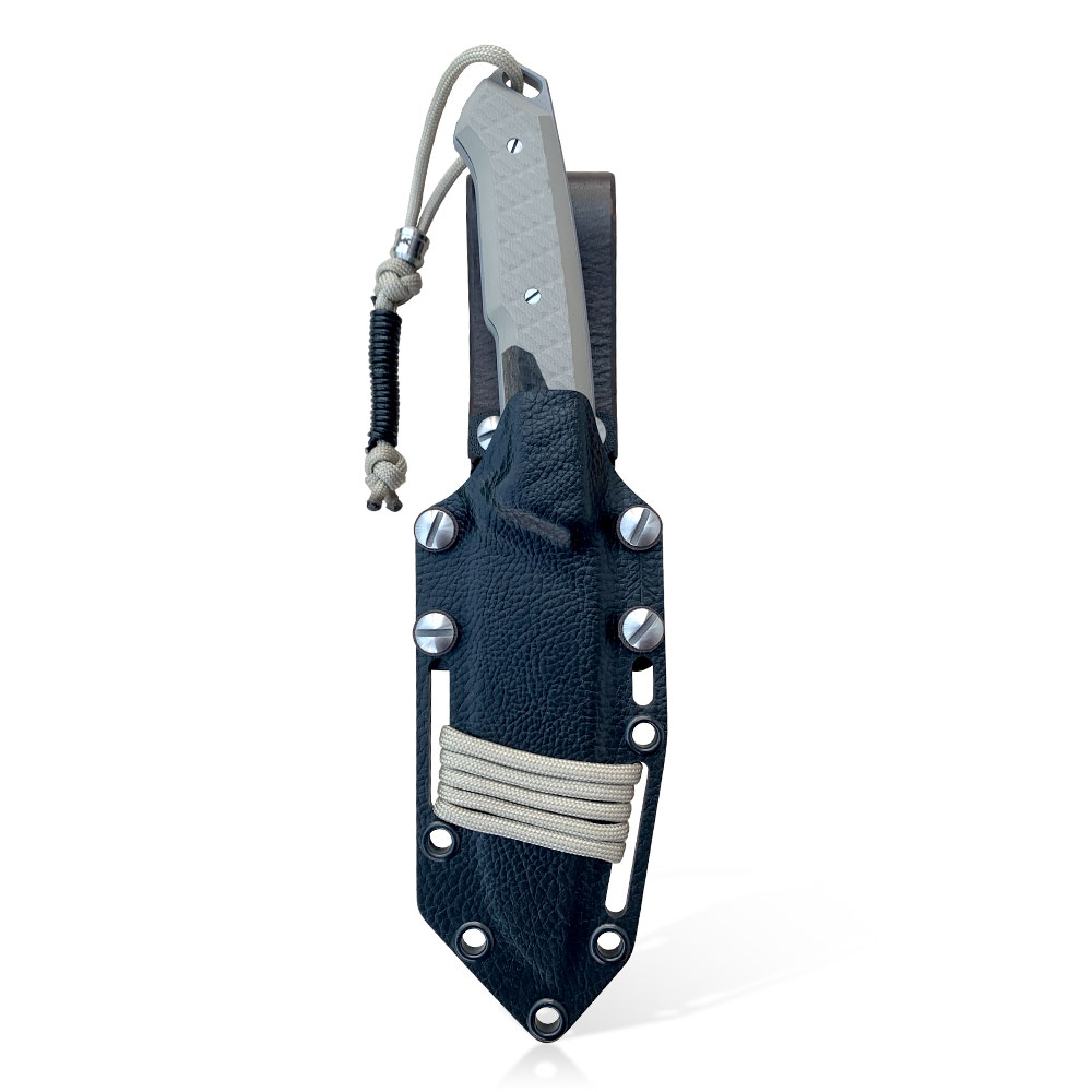 Nóż posiada kaburę z ręcznie formowanego tworzywa holstex o naturalistycznej teksturze, cechującego się wysoką odpornością na uderzenia, zarysowania, charakteryzującego się niską chłonnością wilgoci, odpornego na różnorodne warunki atmosferyczne oraz wiele środków chemicznych. W prezentowanym modelu kabura zrobiona została z materiału w kolorze czarnym, uzupełniona dodatkami w kolorach, brązowym, coyote i czarnym. Kabura została skręcona stalowymi, satynowymi śrubami.