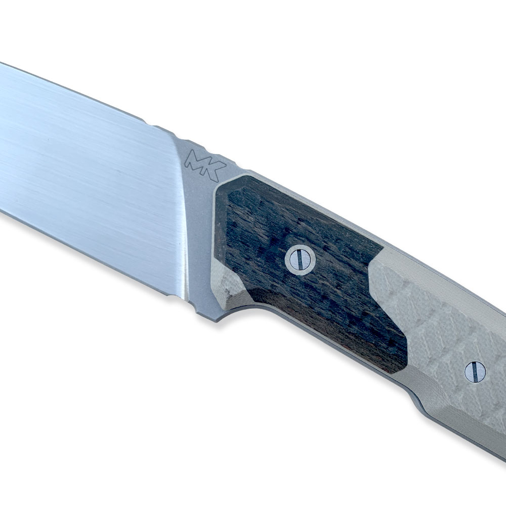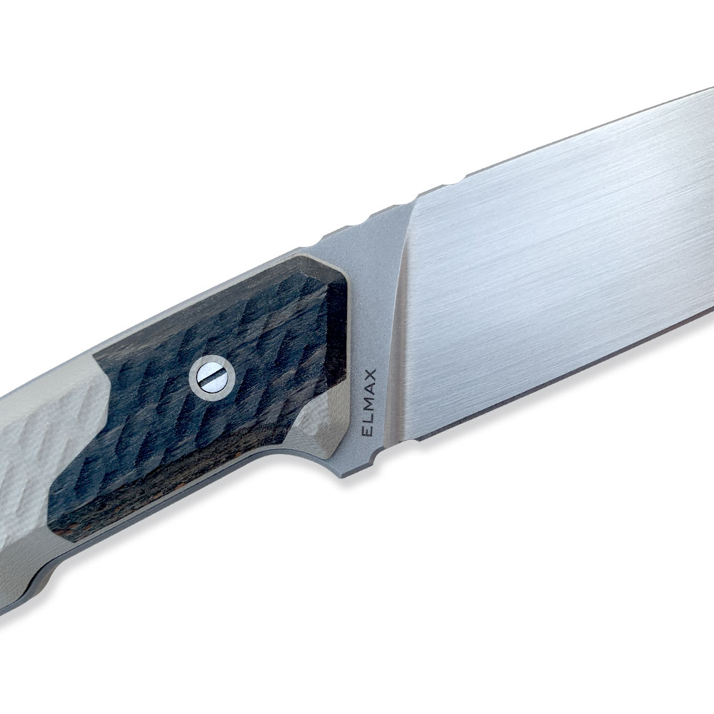 Prezentowany egzemplarz MK-01 Nomad wykonany został z jednego kawałka stali elmax (stal proszkowa chromowo-wanadowo-molibdenowa). Jest to więc nóż o konstrukcji full-tang. Elmax to jedna z kilku stali dostępnych na rynku znajdujących się w absolutnym topie jakościowym materiałów służących do produkcji noży premium. Noże z niej zrobione są ekstremalnie wytrzymałe na przeciążenia, niezwykle długo pozostają ostre i mają doskonałe właściwości antykorozyjne.