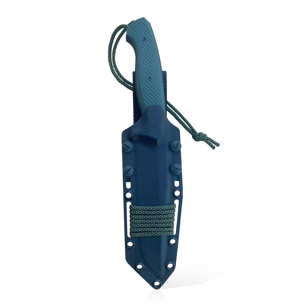 Nóż posiada kaburę z ręcznie formowanego tworzywa Kydex cechującego się wysoką odpornością na uderzenia, zarysowania, charakteryzującego się niską chłonnością wilgoci, odpornego na różnorodne warunki atmosferyczne oraz wiele środków chemicznych. W prezentowanym modelu kabura zrobiona została z materiału w kolorze czarnym i uzupełniona zielonymi dodatkami.