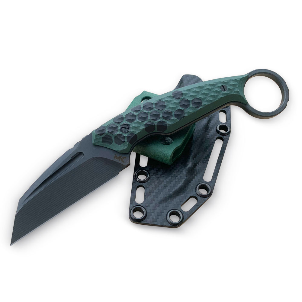 MK Knives & Tools Claw „Honeycomb & Dark Green” | Vanadis 4 Extra | PVD to nóż typu karambit wykonany w pracowni Marcina Kampki.