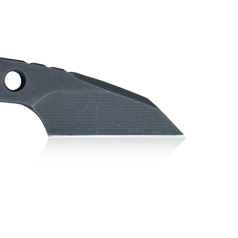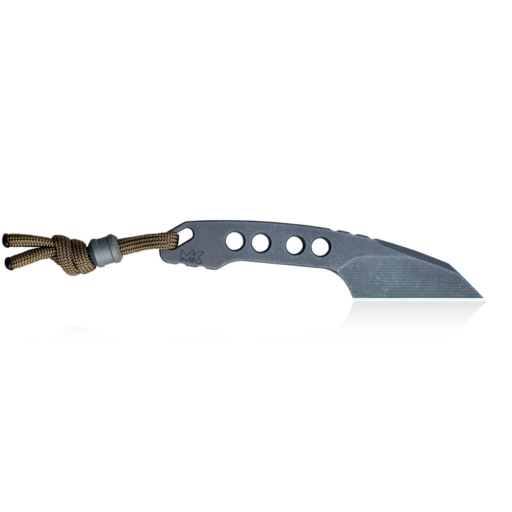 Niewielkie rozmiary, ale duże możliwości! Skuteczne ostrze typu wharncliffe ze świetnej stali Elmax, dopracowana kabura z kydexu, z możliwością przenoszenia przy pasku w pionie lub w poziomie, oraz z opcją przenoszenia na szyi (nóż typu neck). Zgrabna całość zamknięta w pięknym projekcie, wykonana w niezwykłym, drobiazgowym stylu MK Knives & Tools, dopełniona w designie stylowym koralikiem MK.