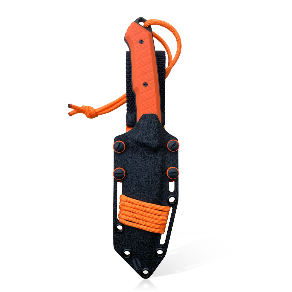 Nóż posiada kaburę z ręcznie formowanego tworzywa kydex cechującego się wysoką odpornością na uderzenia, zarysowania, charakteryzującego się niską chłonnością wilgoci, odpornego na różnorodne warunki atmosferyczne oraz wiele środków chemicznych. W prezentowanym modelu kabura zrobiona została z materiału w kolorze czarnym i uzupełniona pomarańczowymi dodatkami.