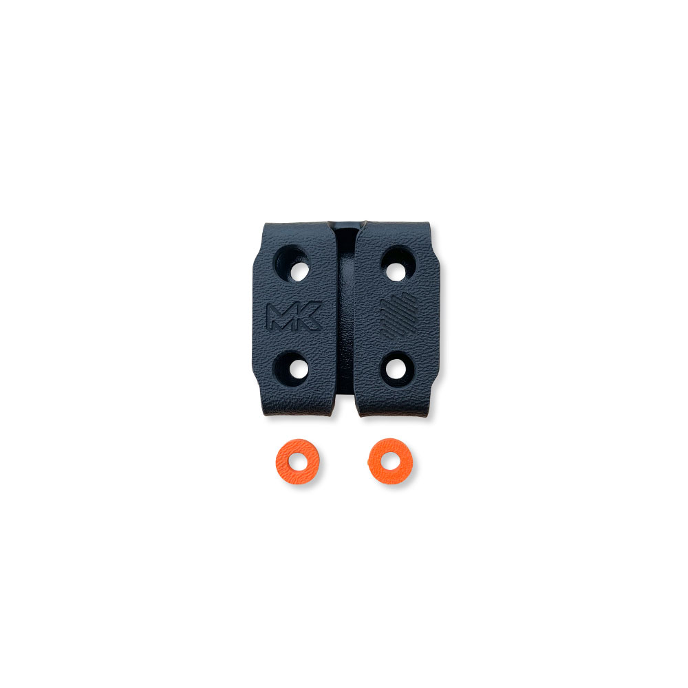 Dla spójności w wyglądzie na kaburze oraz dodatkowej klamrze z kydexu znajdziemy „odbicie” wzoru znajdującego się na rękojeści.NAZWA: Nomad „Black & Orange”