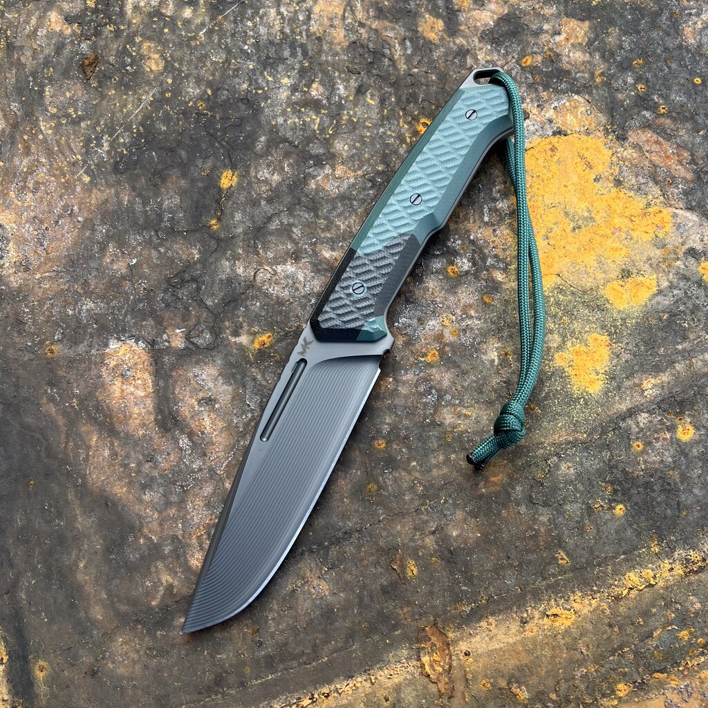 - Rękojeść: zielony kompozyt G10 + czarne wstawki