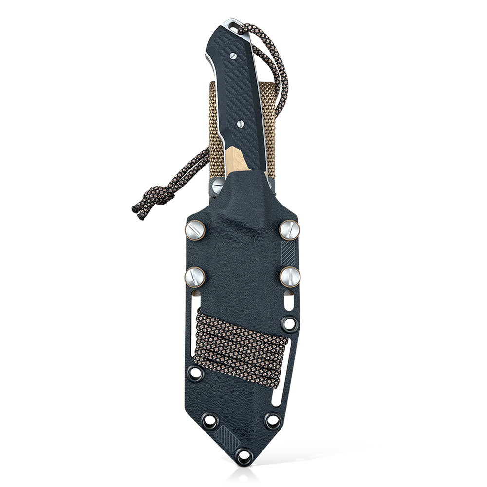 Nóż posiada kaburę z ręcznie formowanego tworzywa kydex cechującego się wysoką odpornością na uderzenia, zarysowania, charakteryzującego się niską chłonnością wilgoci, odpornego na różnorodne warunki atmosferyczne oraz wiele środków chemicznych.