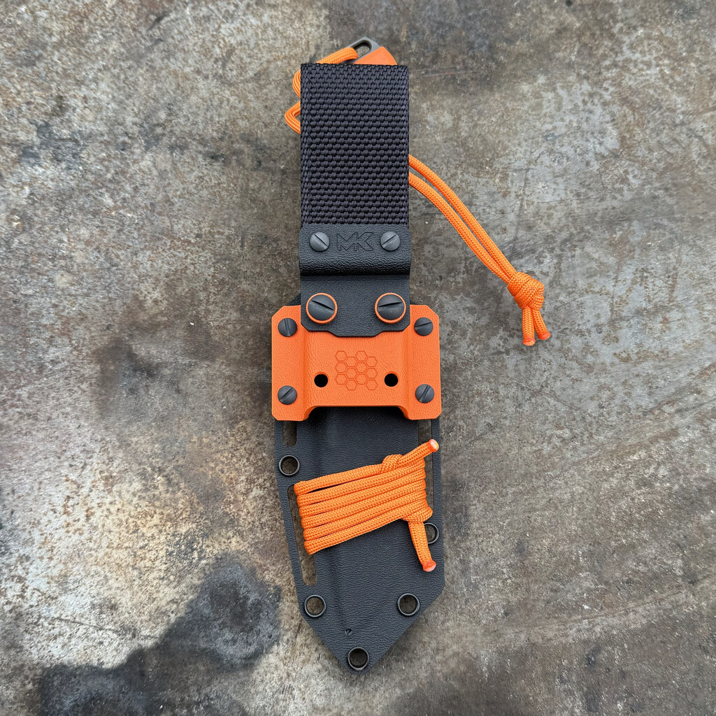 Nóż MK Knives & Tools Nomad „Honeycomb” DLC Vanadis 4 Extra Orange G10 & Epoxy Resin Black Kydex