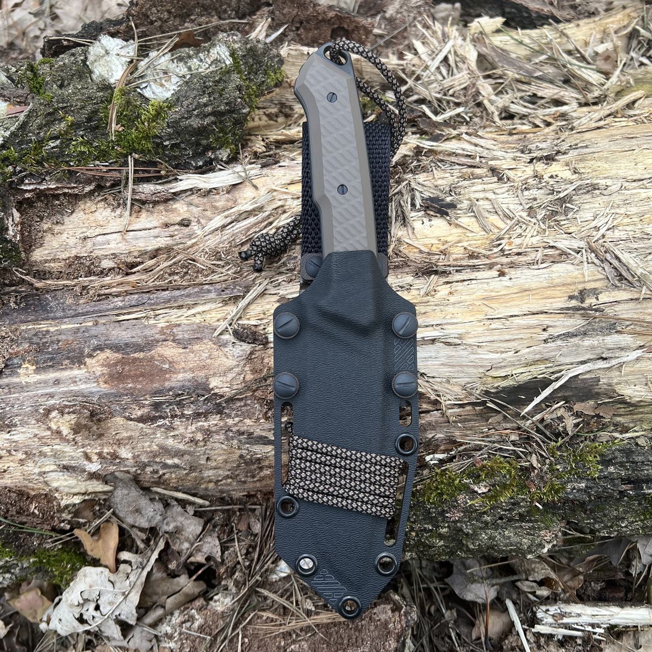Nóż posiada kaburę z ręcznie formowanego tworzywa Kydex cechującego się wysoką odpornością na uderzenia, zarysowania, charakteryzującego się niską chłonnością wilgoci, odpornego na różnorodne warunki atmosferyczne oraz wiele środków chemicznych.