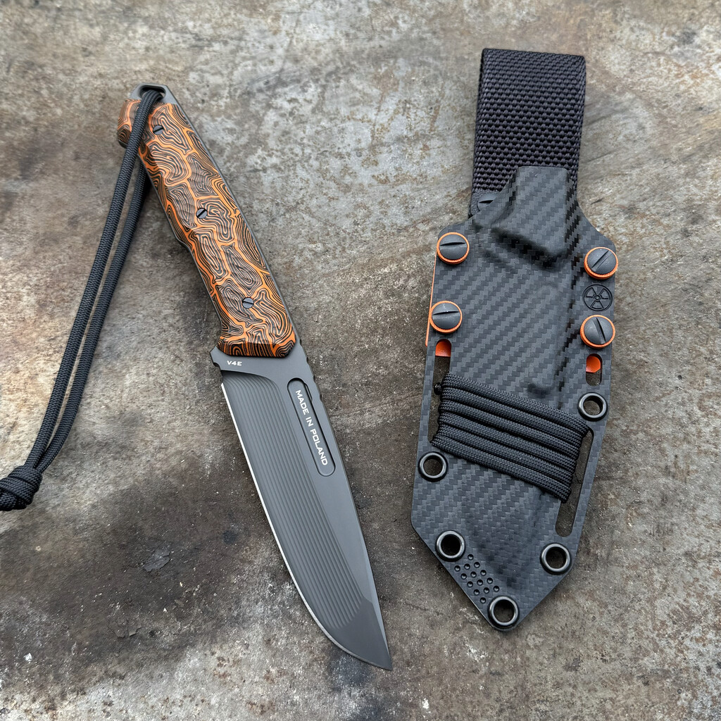 Nóż MK Knives & Tools Nomad „Postapo” DLC Vanadis 4 Extra Orange Turtle G10 Black Carbon Holstex