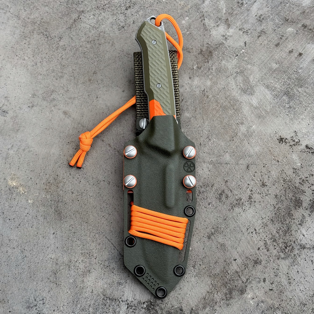 - Pokrowiec: kabura Kydex (OD Green) i pomarańczowe dodatki