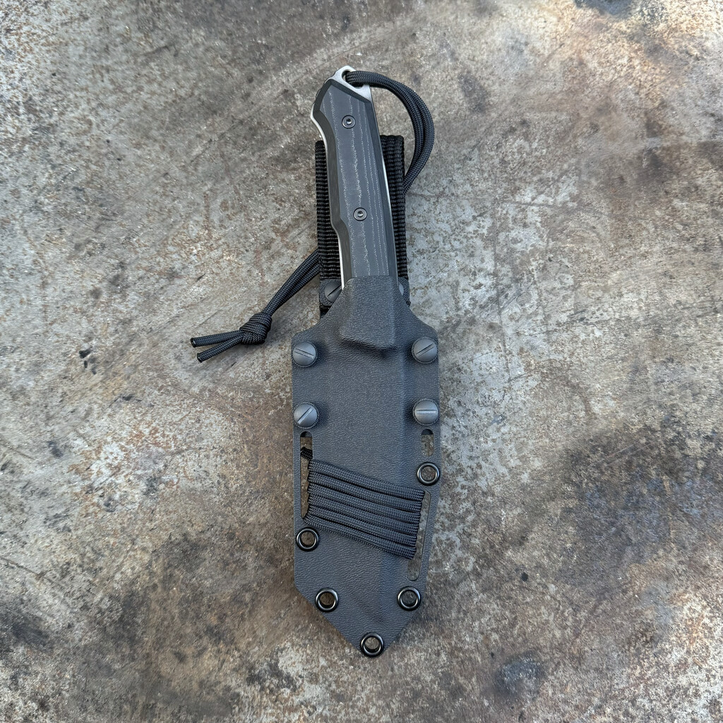 Nóż posiada kaburę z ręcznie formowanego tworzywa Kydex cechującego się wysoką odpornością na uderzenia, zarysowania, charakteryzującego się niską chłonnością wilgoci, odpornego na różnorodne warunki atmosferyczne oraz wiele środków chemicznych.