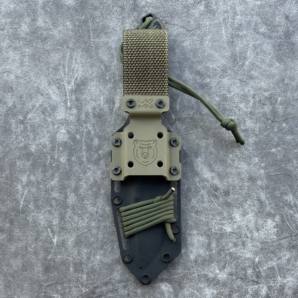 Nóż MK Knives & Tools Nomad Tanto „Fear The Bear” DLC Vanadis 4 Extra Olive/Black Micarta & Black G10 Black Kydex